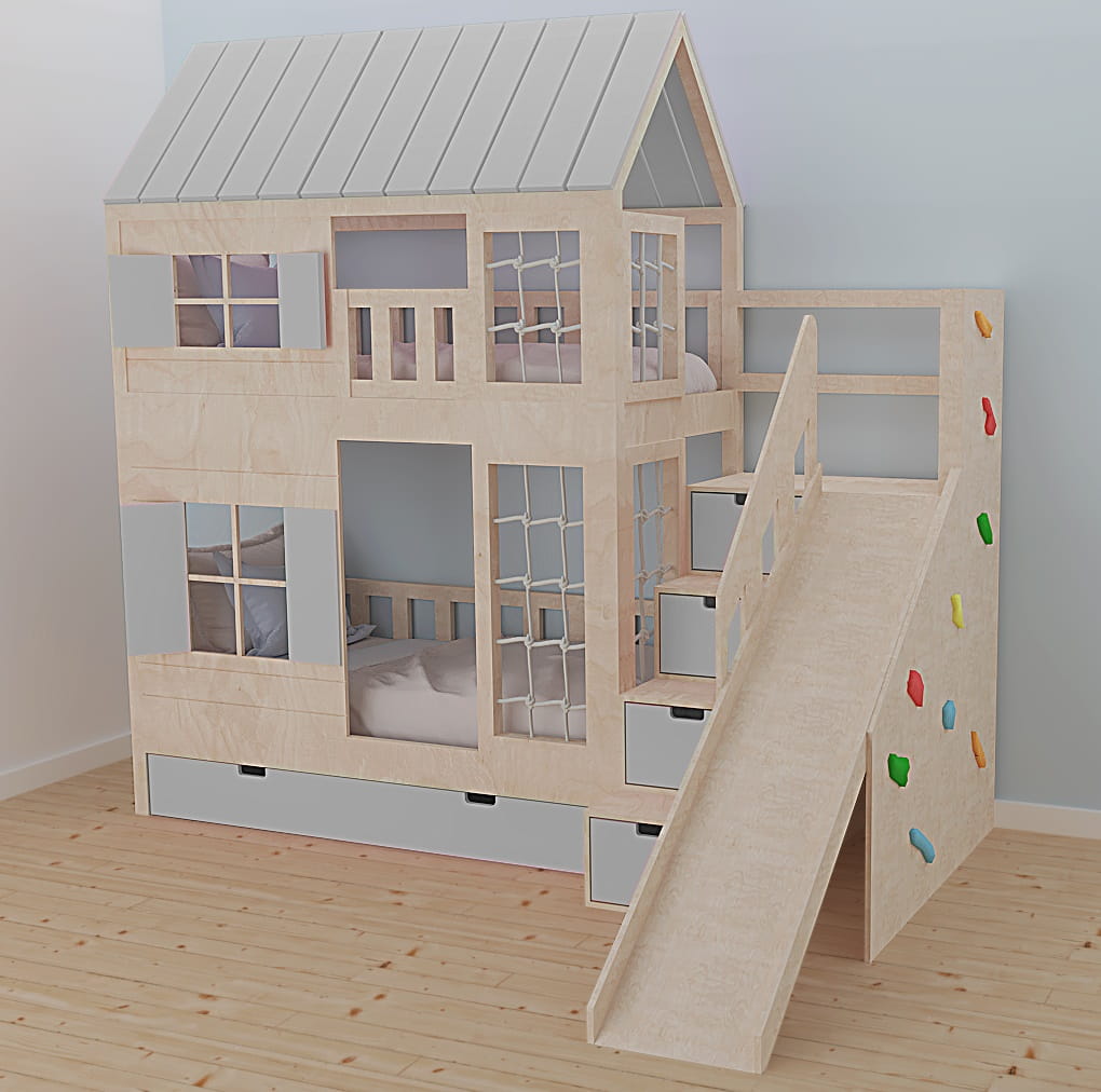 Łóżko piętrowe ze zjeżdżalnią: wymagania przestrzeni i zasady użytkowania.