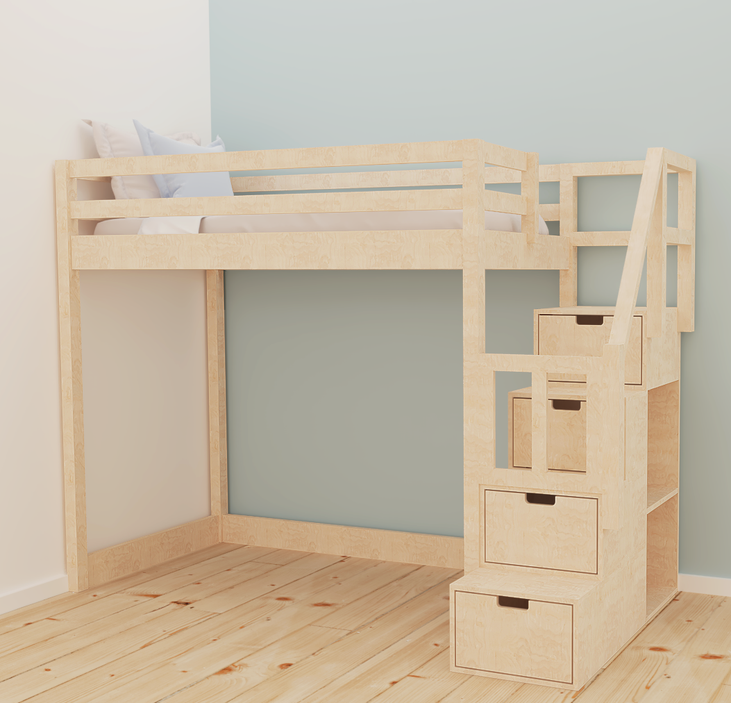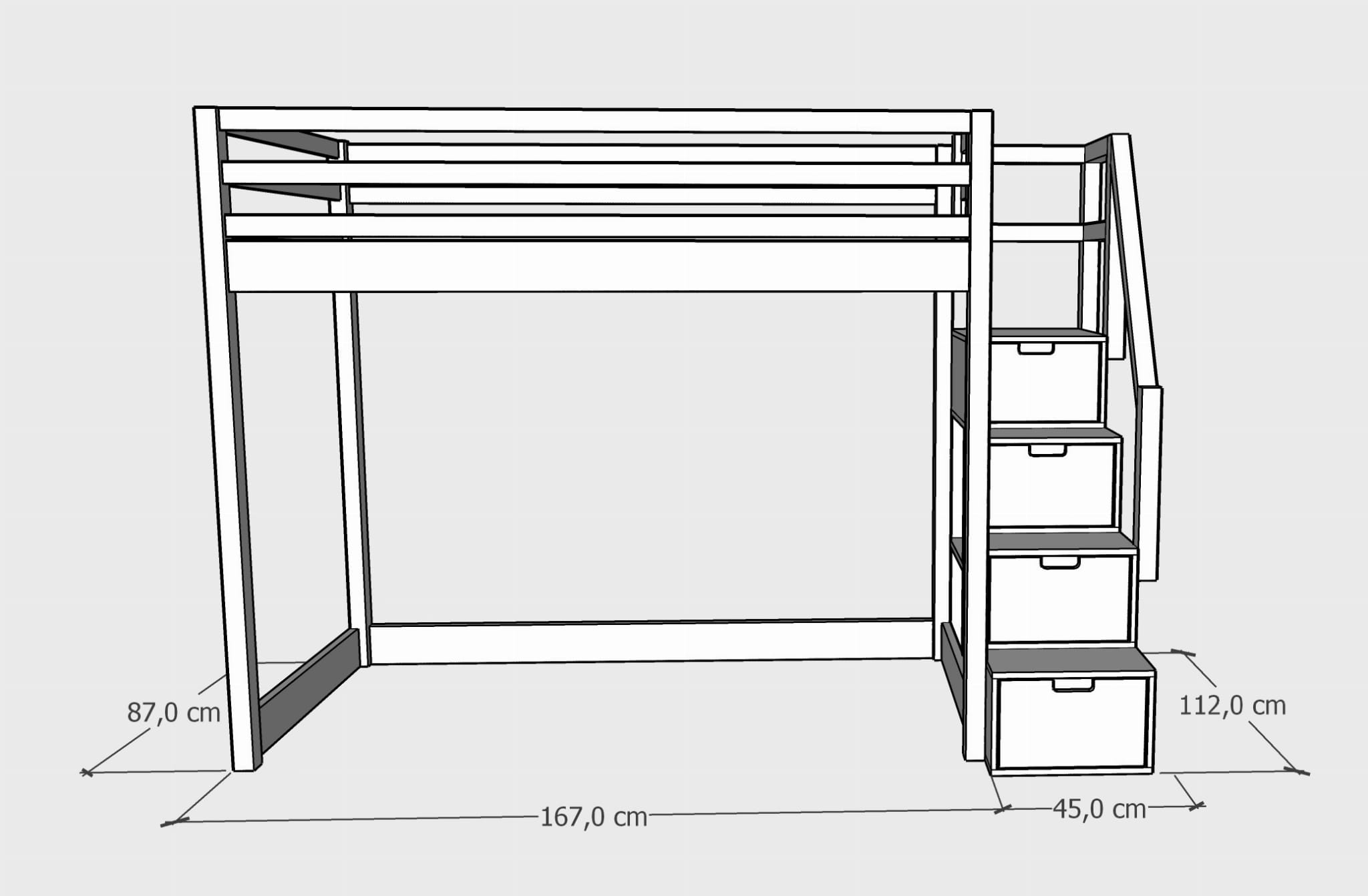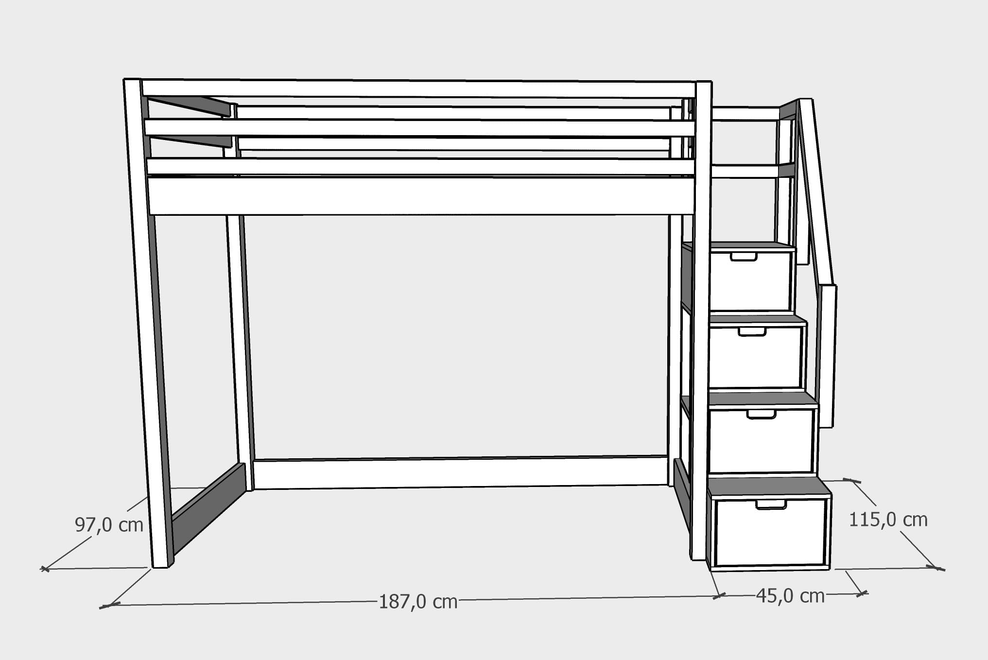 - strona wejścia: schodki mogą być zamontowane z prawej lub lewej strony łóżka. W schodkach znajdują się szufladki oraz furteczka