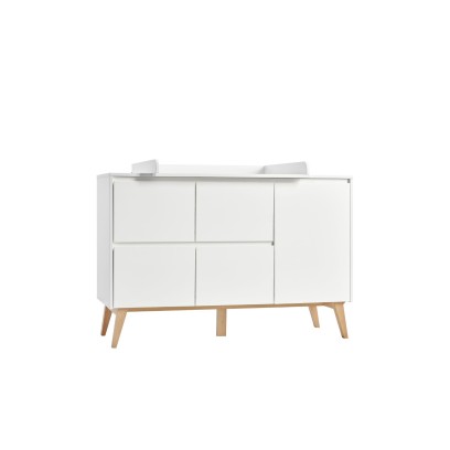 Na blacie komody znajduje się stabilny przewijak, który wyznacza bezpieczne miejsce do pielęgnacji niemowlęcia. Z czasem, gdy przewijak nie będzie już potrzebny, możesz go zdemontować, a mebel zamieni się w klasyczną komodę do pokoju dziecka lub przedszkolaka.