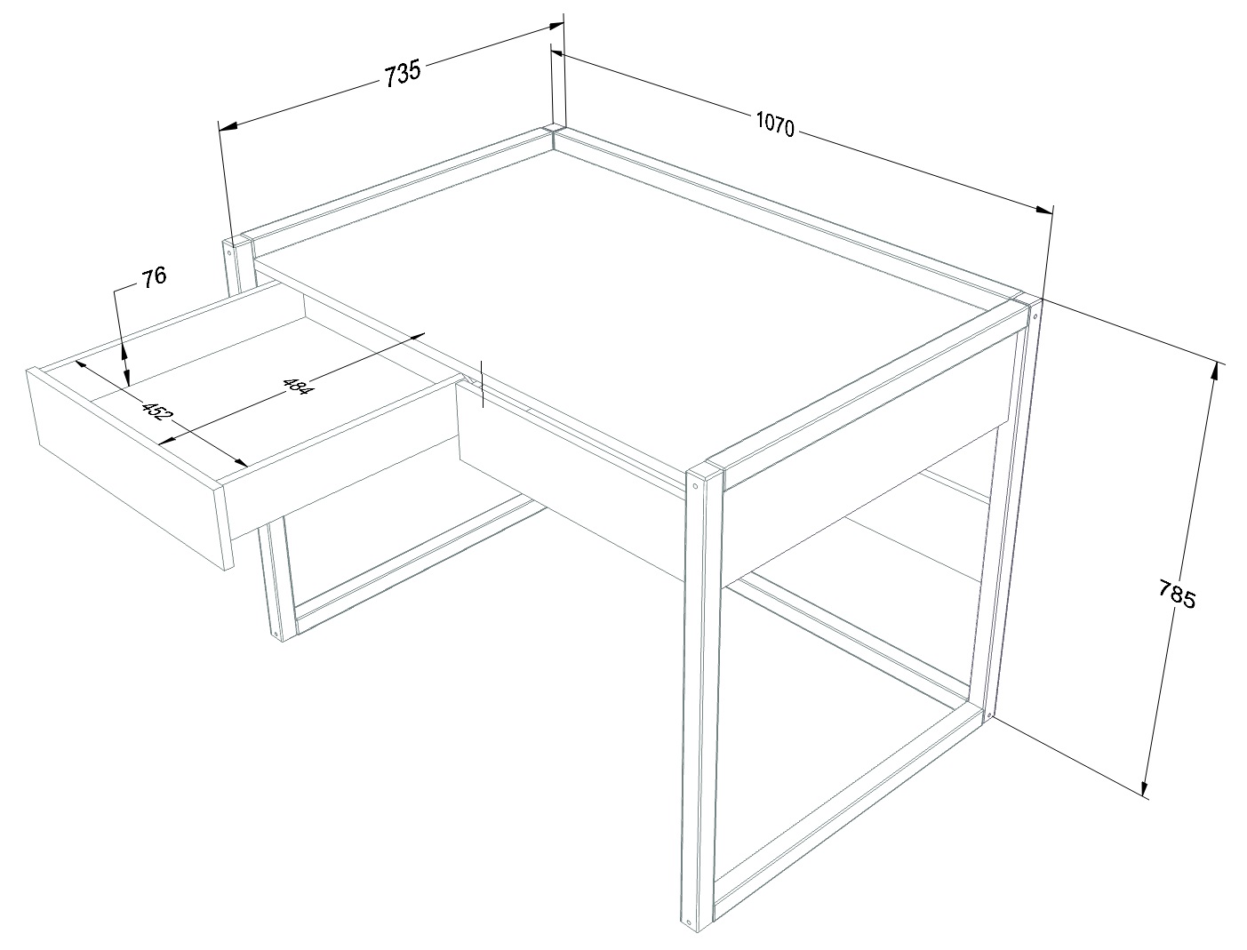 Dzięki kompaktowym wymiarom biurko sprawdzi się także w niewielkich wnętrzach. Prosta bryła pozwala dosunąć je do ściany lub ustawić w rogu, tworząc wyraźnie wydzieloną strefę nauki w pokoju dziecka.
