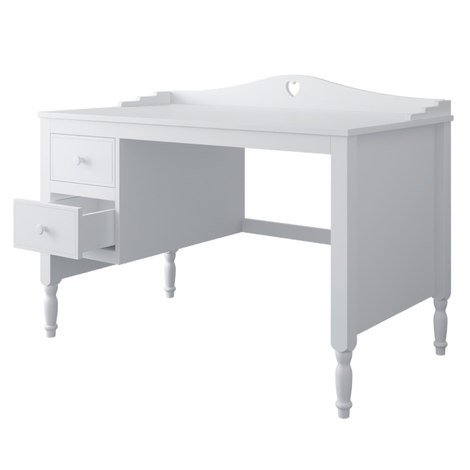 Dziewczęcy design biurka Bella – serduszko, nóżki i śnieżna biel