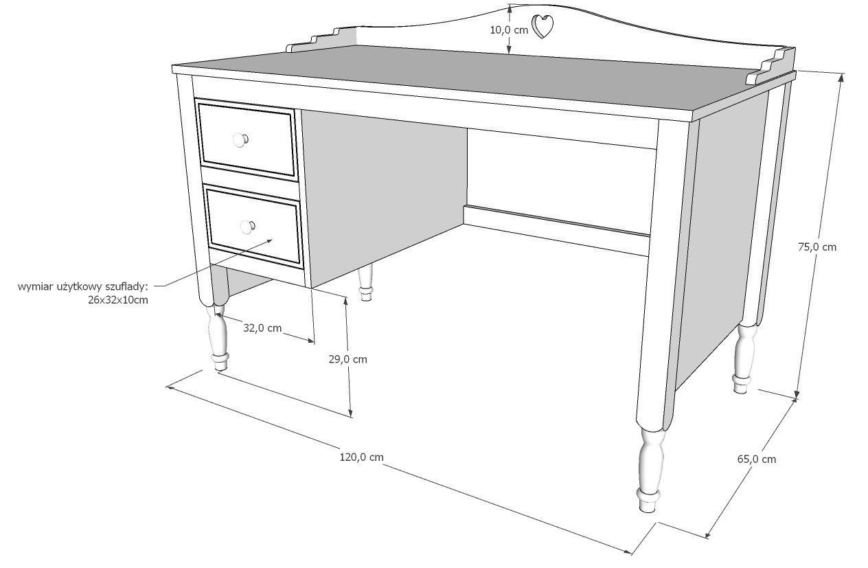 Blat biurka został wykończony ozdobnym panelem z wyciętym serduszkiem, który zabezpiecza ścianę przed zabrudzeniami i tworzy przytulne tło dla lampki, kalendarza lub tablicy inspiracji. Dzięki temu biurko Bella świetnie sprawdzi się jako:
