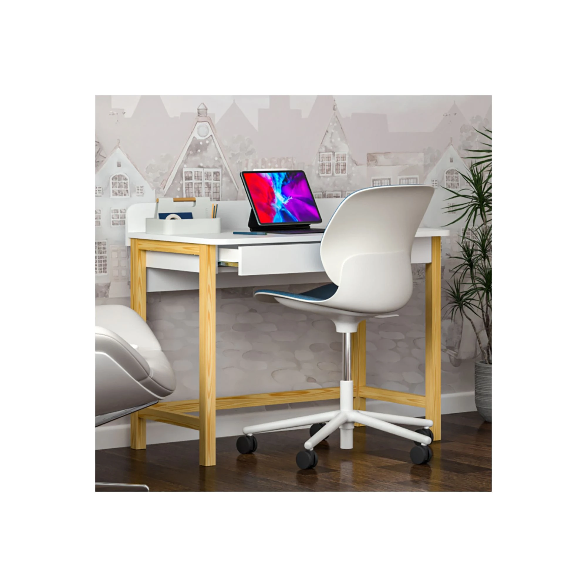 Bezpieczne biurko dziecięce z szufladami i praktyczną przegrodą