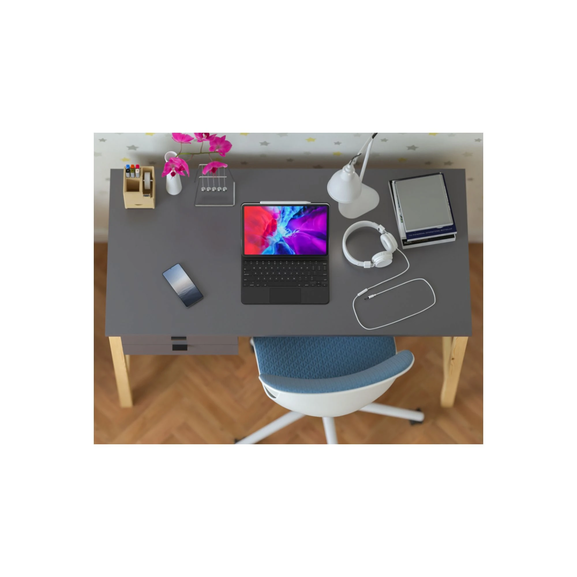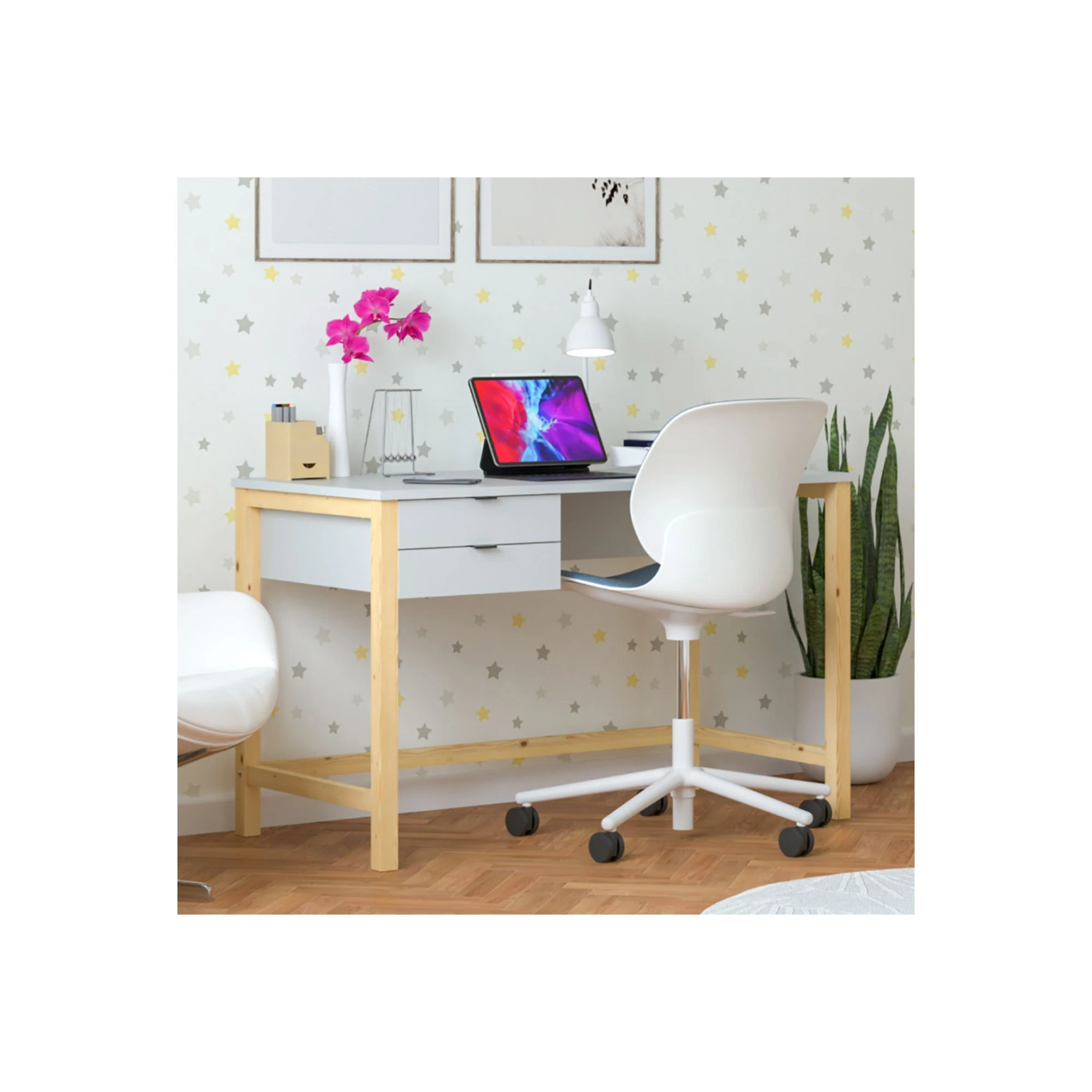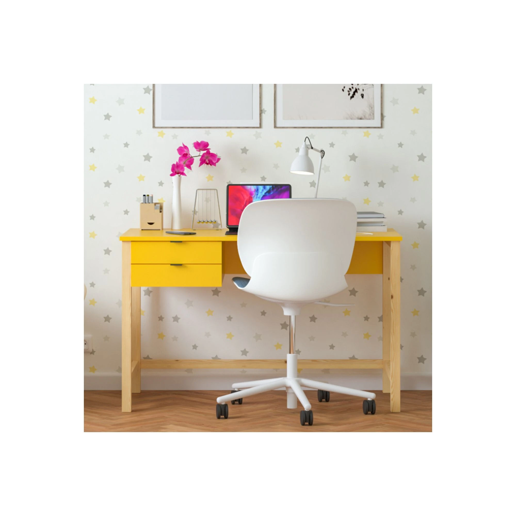 To rozwiązanie praktyczne i elastyczne, szczególnie wtedy, gdy pokój dziecka trzeba urządzić funkcjonalnie, ale bez ciężkich wizualnie brył. Dzięki lekkiej konstrukcji biurko dobrze odnajduje się w mniejszych pomieszczeniach i w przestrzeniach urządzonych nowocześnie, jasno oraz naturalnie.