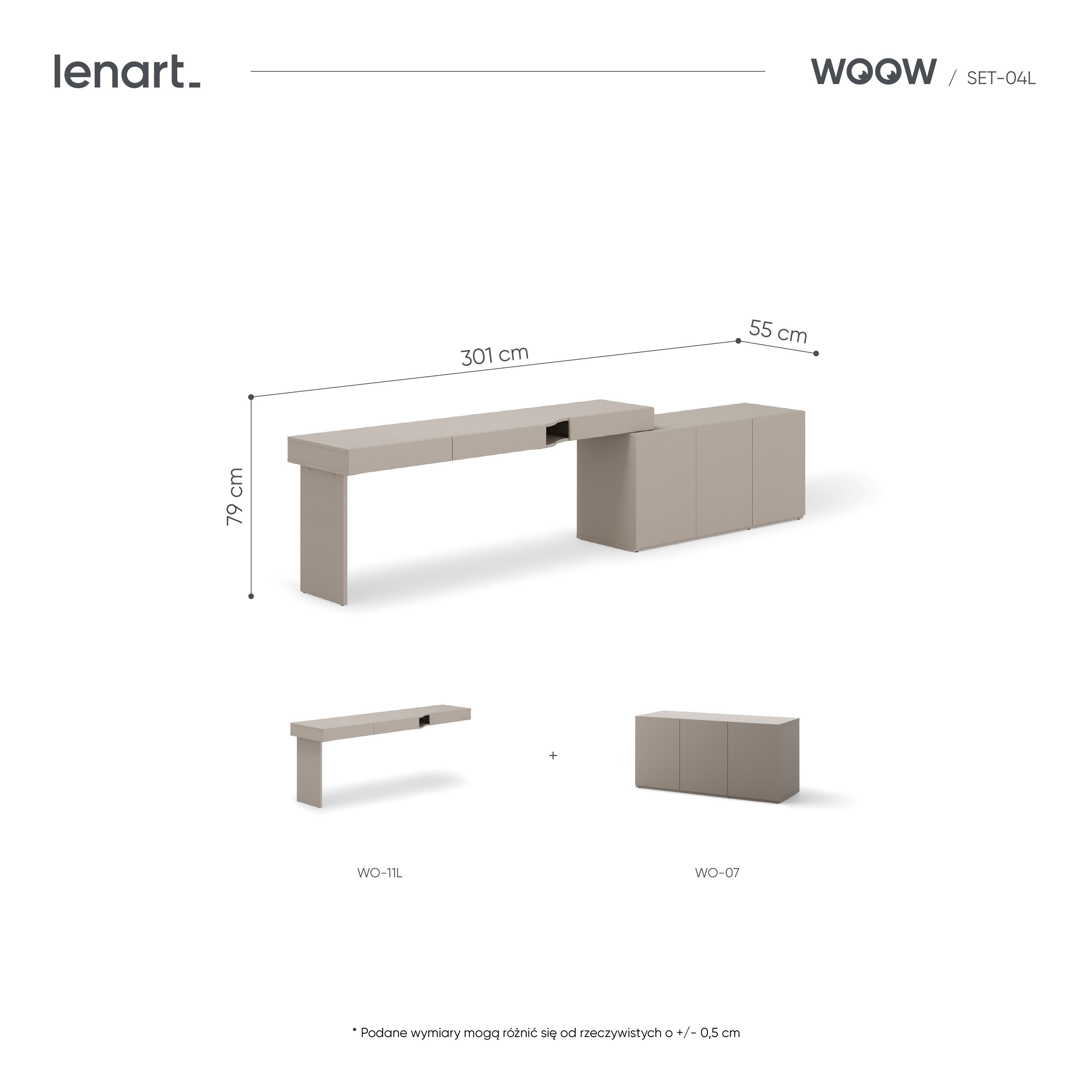 Biurko z szafkami WOOW to nie tylko stylowy mebel – to prawdziwe centrum dowodzenia w pokoju nastolatka. Łączy funkcjonalność, ergonomię i nowoczesny design, tworząc idealne warunki do nauki, pracy, grania i rozwijania pasji. Dzięki przemyślanej konstrukcji doskonale sprawdzi się zarówno w mniejszych przestrzeniach, jak i bardziej przestronnych aranżacjach młodzieżowych.
