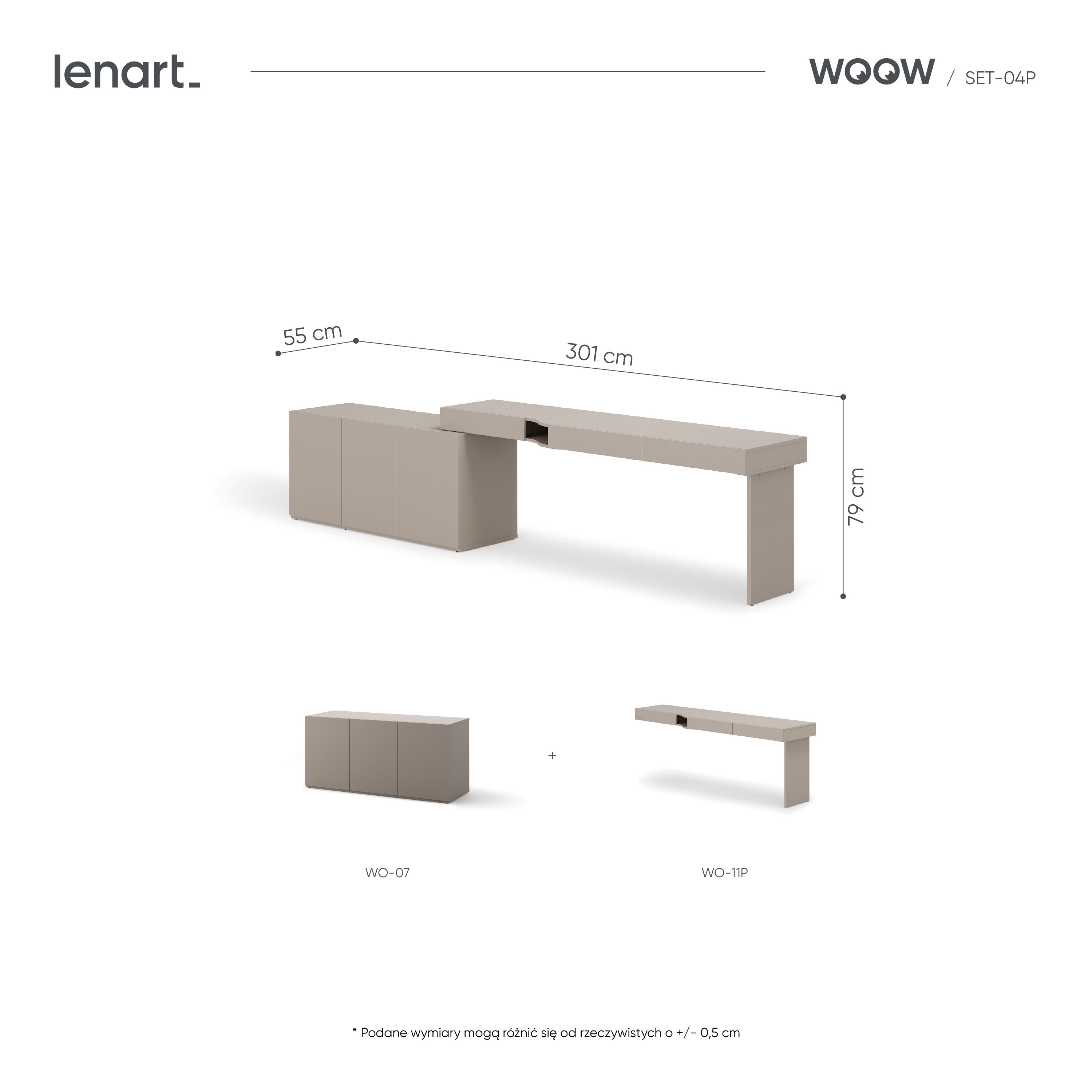 Biurko z szafkami WOOW - specyfikacja: