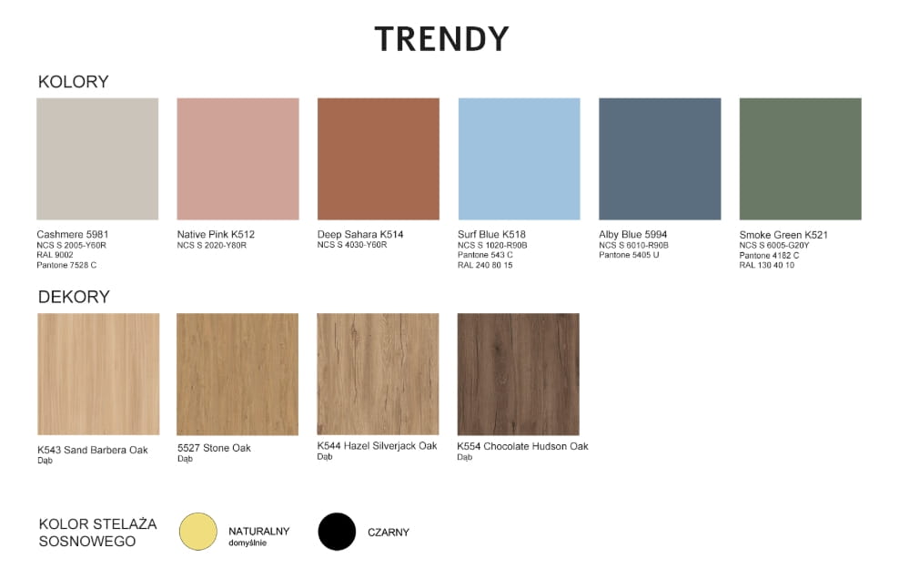 - korpus/fronty: płyta laminowana, 10 kolorów
