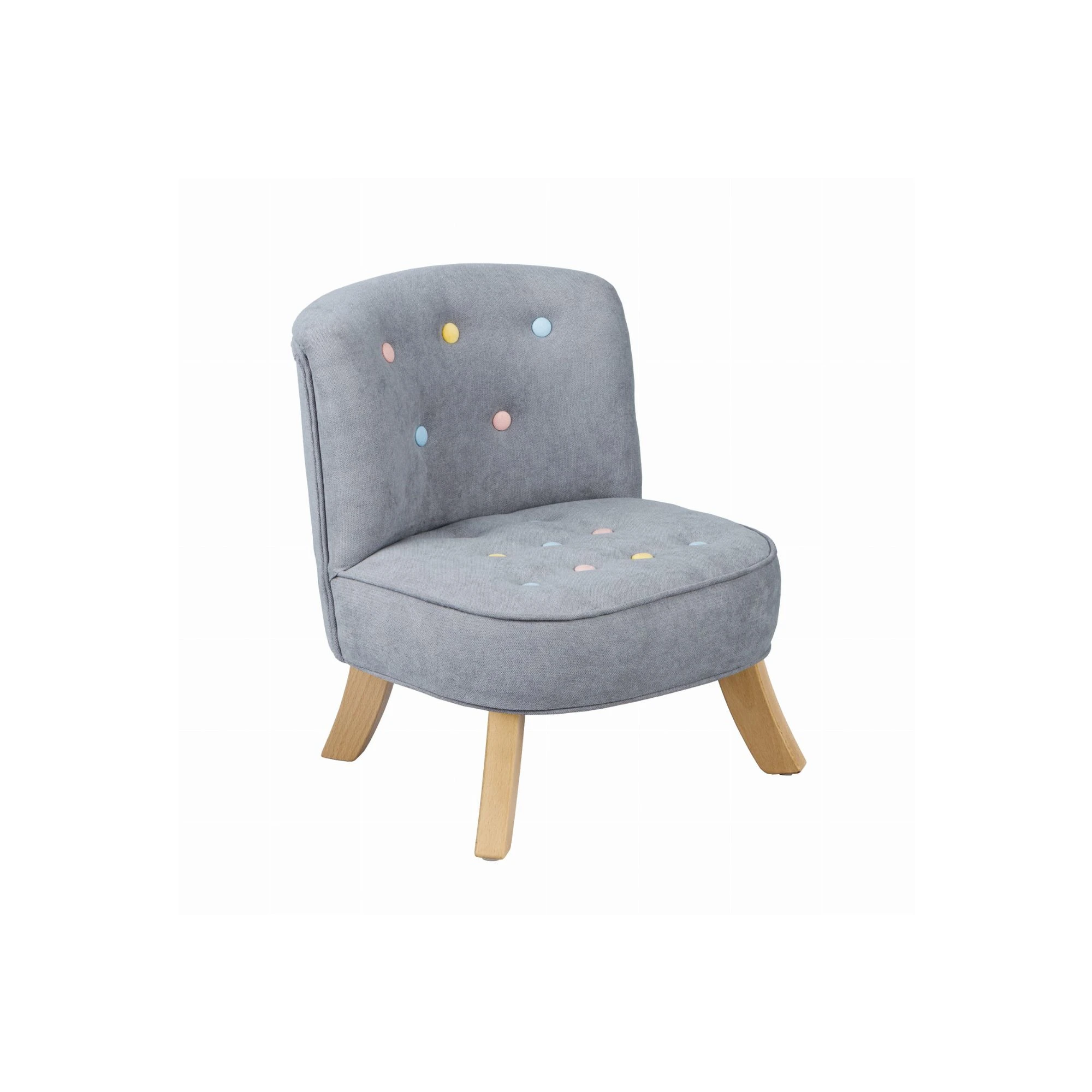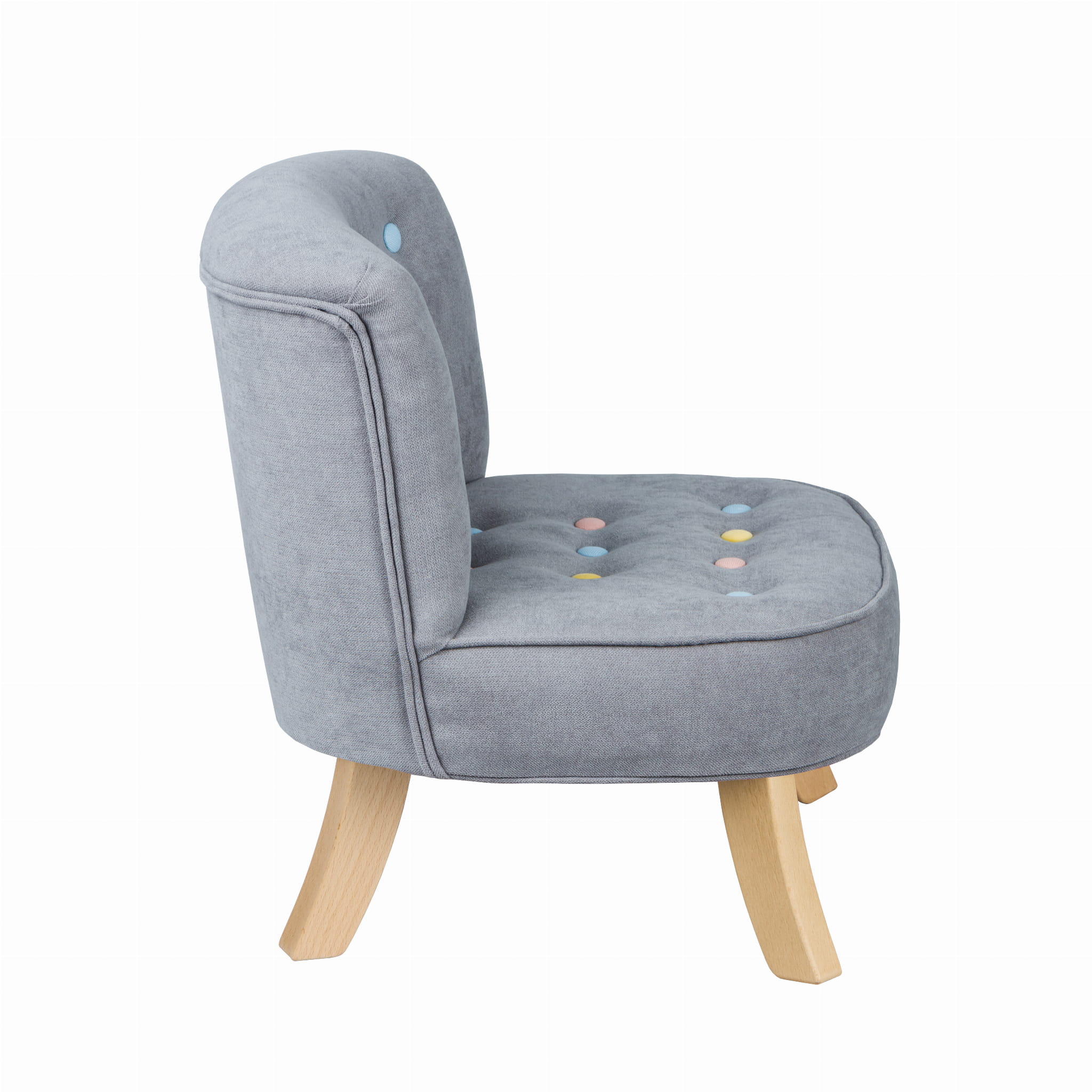 Fotel dziecięcy z kolorowymi guziczkami – subtelny mebel z wyjątkowym detalem