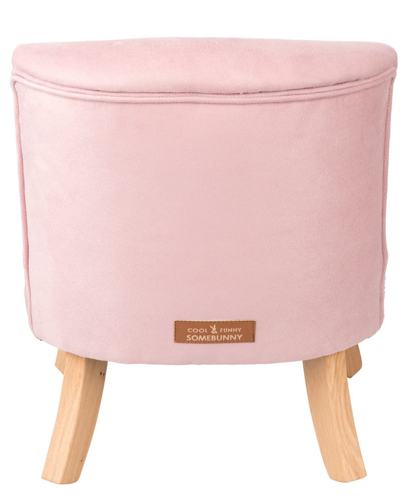 Fotel został osadzony na drewnianych nóżkach o wysokości 17 lub 25 cm, dostępnych w kolorze naturalnym lub białym. Taki wybór ułatwia dopasowanie mebla do pozostałych elementów wyposażenia i pozwala lepiej zbudować spójną aranżację pokoju dziecka.