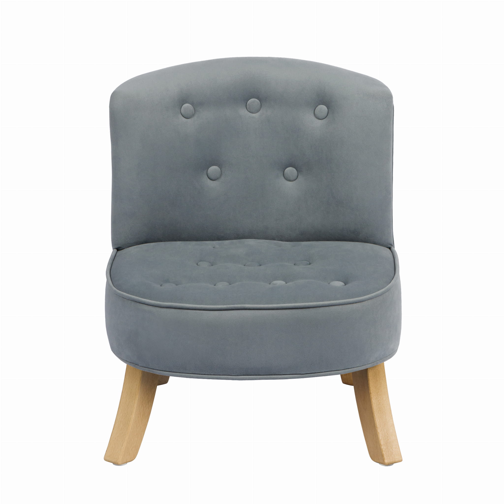 Fotel został osadzony na drewnianych nóżkach o wysokości 17 lub 25 cm, dostępnych w kolorze naturalnym lub białym. Dzięki temu łatwo dopasować go do pozostałych mebli i zbudować spójną aranżację pokoju dziecka.