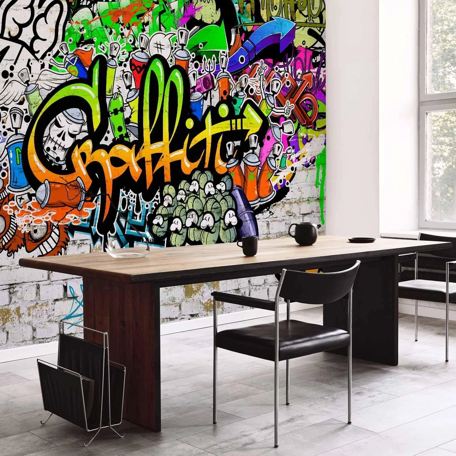 Fototapety stają się coraz bardziej popularne i z pewnością jeszcze długo będą wpisywać się w obowiązujące trendy wnętrzarskie. Wynika to m.in. z faktu, że dają spektakularne efekty, a ich montaż nie stanowi dużego problemu. Fototapeta "Fototapeta - Graffiti na ścianie" pozwala na całkowitą zmianę dotychczasowej aranżacji i to bez potrzeby przeprowadzania gruntownego remontu. Wystarczy odpowiednio dobrać wzór, aby stworzyć klimatyczne i eleganckie wnętrze. Nasze fototapety na wymiar to odpowiedni wybór dla każdego, komu marzy się metamorfoza domu. Z ich pomocą można bez dużego wysiłku odświeżyć dowolne pomieszczenie, a więc sypialnię, salon, pokój dziecka czy jadalnię. Fototapety ścienne są niezwykle łatwe w montażu. W porównaniu do zwykłego malowania praca nie zajmuje tak dużo czasu, można z powodzeniem wykonać ją samodzielnie. W dodatku taka dekoracja pozwala na zamaskowanie niedoskonałości ścian (np. trudnych do usunięcia plam) i uzyskanie doskonałych efektów.