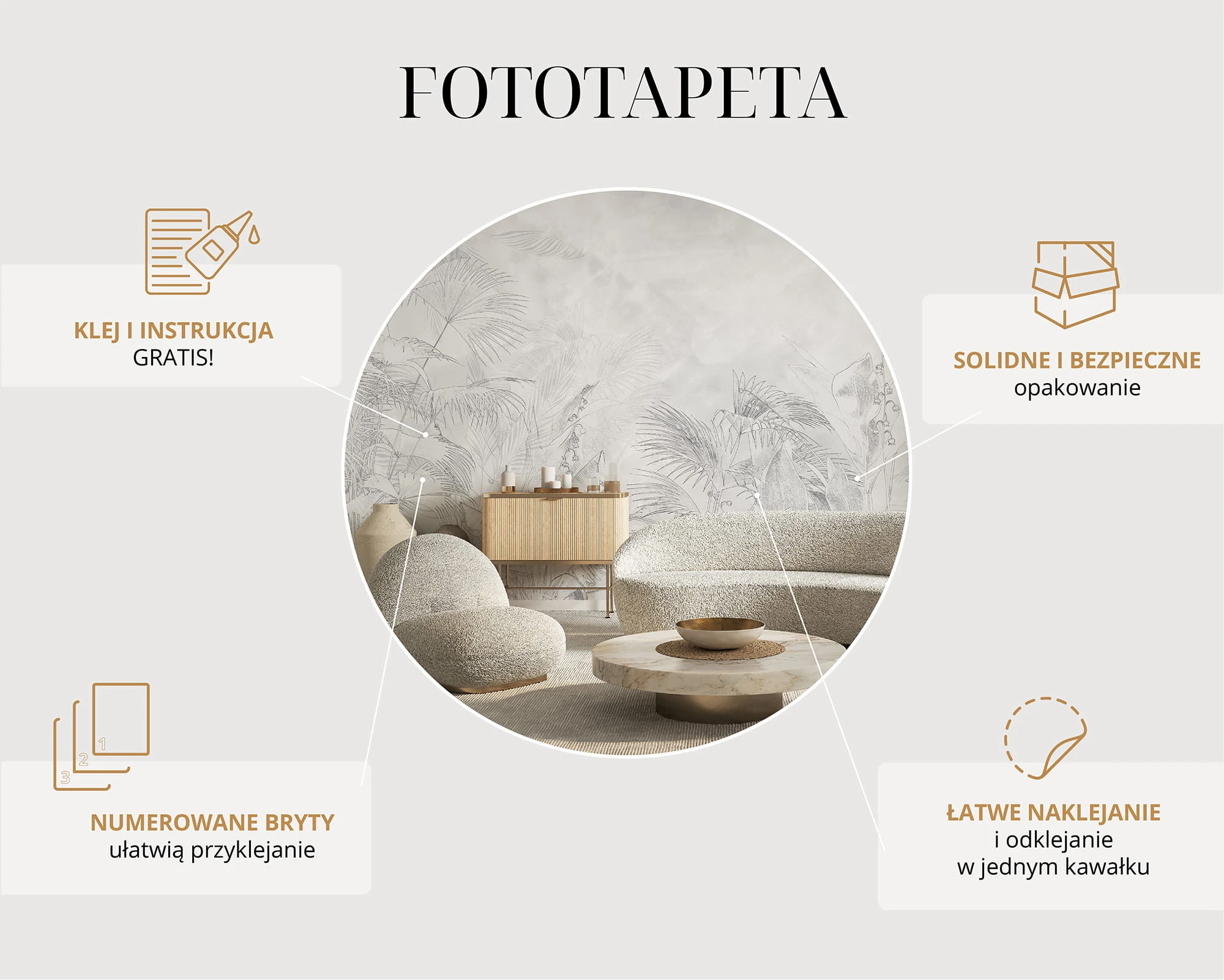 Tapety samoprzylepne są bardzo łatwe i szybkie w aplikacji. Oferowany materiał samoprzylepny posiada klej kropelkowy, repozycjonowalny, dzięki czemu jest łatwy w naklejaniu. Tapeta nie uszkodzi się jeśli skleją się końcówki materiału, albo gdy trzeba odkleić kawałek i przykleić ponownie. Drukowane w ekologicznej technologii druku lateksowego HP najwyższej jakości, dzięki czemu kolory zachowują swoją intensywność i długotrwałość. Szerokie zastosowanie materiału sprawia, że świetnie prezentuje się nie tylko na ścianie, ale także na innych gładkich powierzchniach tj. meblach, lustrze, powierzchniach szklanych lub z tworzywa sztucznego.