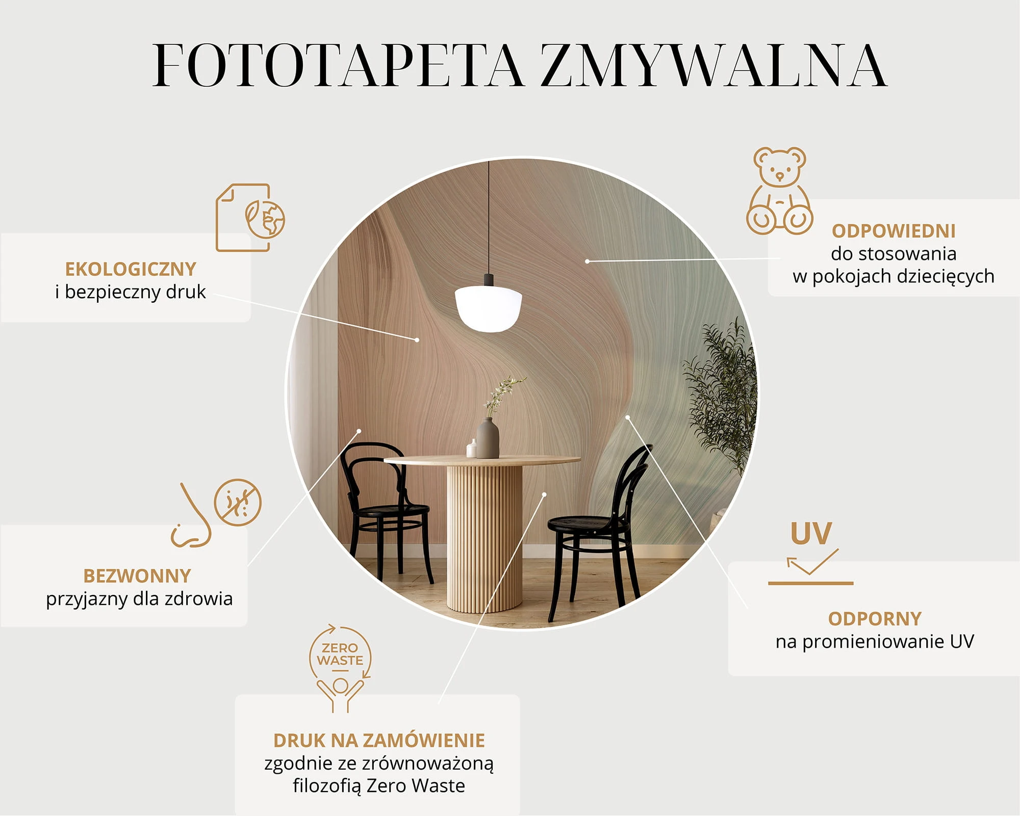 Fototapety/tapety zmywalne są idealne do pomieszczeń o podwyższonej wilgotności (łazienka, sauna, basen, łaźnia), ale także do miejsc narażonych na brud – korytarz, pokój dziecięcy. Drukowana w ekologicznej technologii druku lateksowego HP najwyższej jakości, dzięki czemu kolory zachowują swoją intensywność i długotrwałość. Po druku materiał jest zabezpieczany specjalnym laminatem matowym, dzięki któremu fototapeta ma właściwości zmywalne, a powierzchnia jest lepiej zabezpieczona. Flizelina zmywalna charakteryzuje się gładką matową powierzchnią. Montaż jest bardzo łatwy. Materiał przepuszcza parę wodną. Szerokie zastosowanie tego materiału sprawia, że tapeta będzie się sprawdzała niemal w każdym pomieszczeniu.
