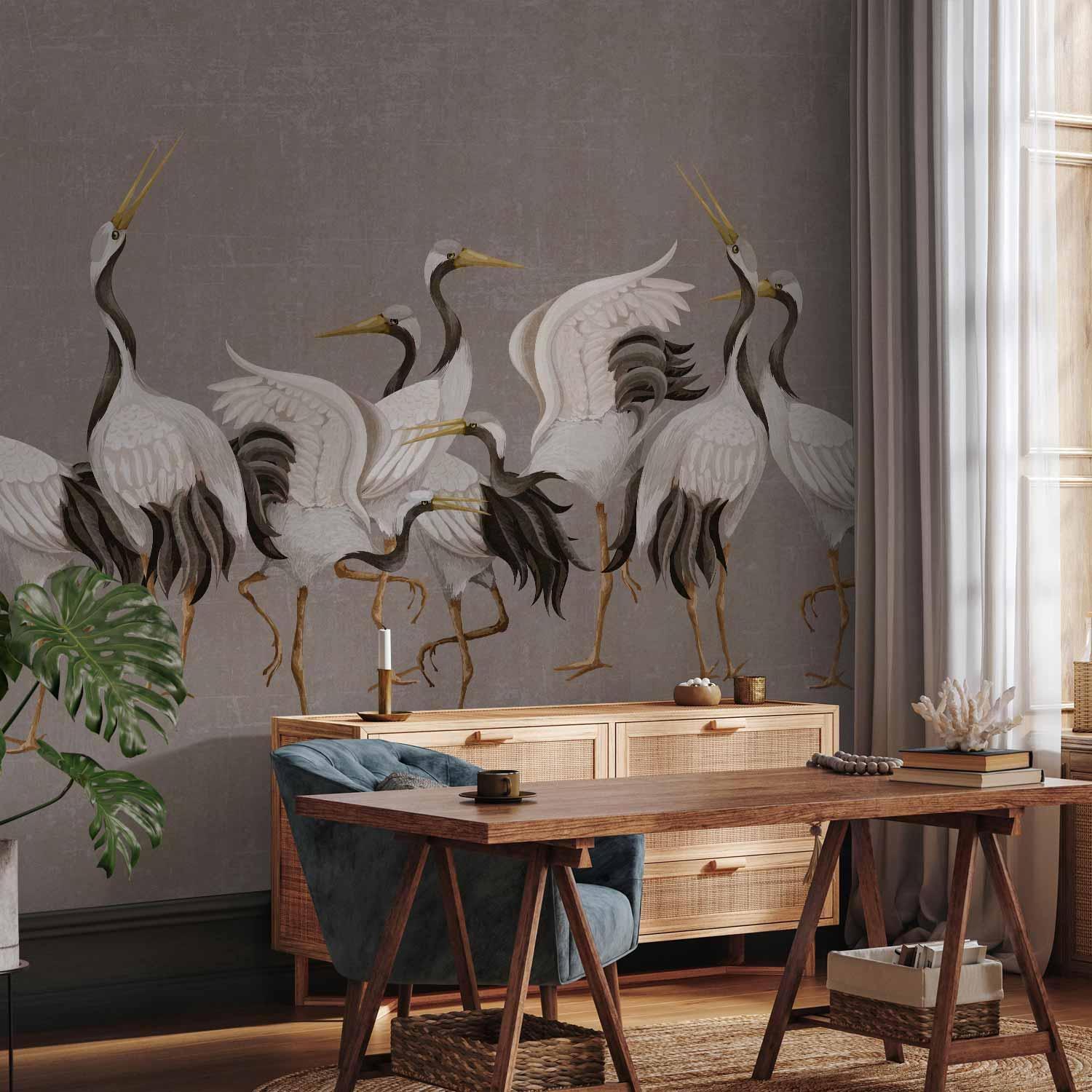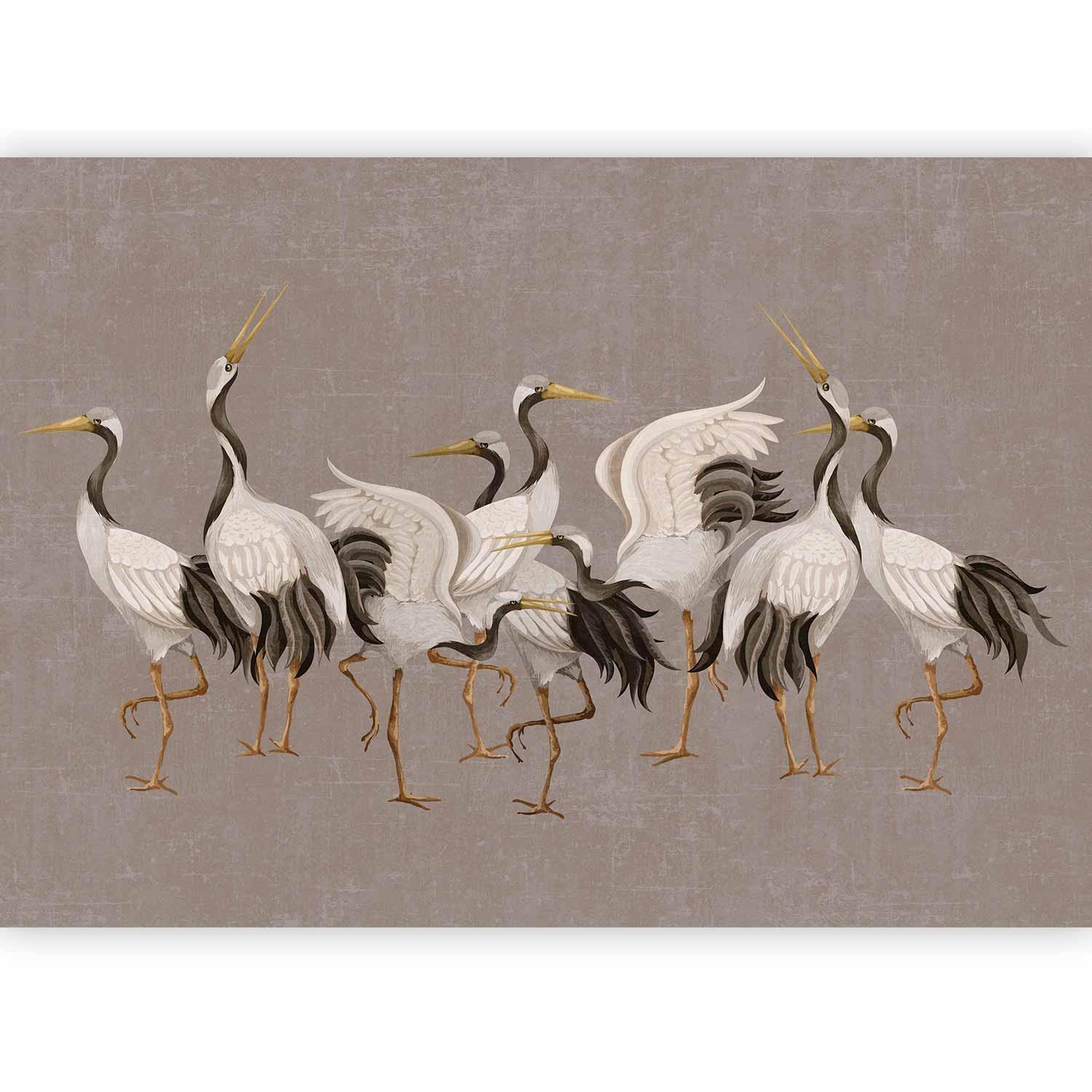 Fototapeta Taniec żurawi jasne sylwetki ptaków na ciepło-szarym tle z fakturą