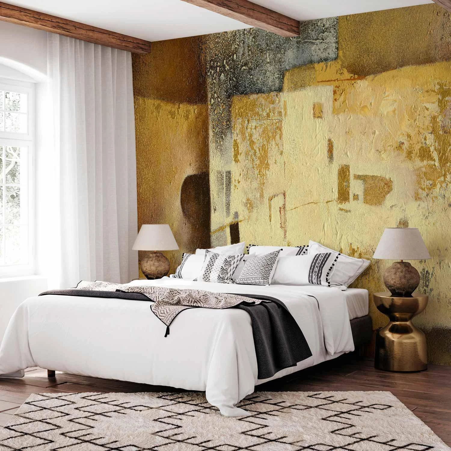 Fototapety stają się coraz bardziej popularne i z pewnością jeszcze długo będą wpisywać się w obowiązujące trendy wnętrzarskie. Wynika to m.in. z faktu, że dają spektakularne efekty, a ich montaż nie stanowi dużego problemu. Fototapeta "Fototapeta - Złota osobliwość" pozwala na całkowitą zmianę dotychczasowej aranżacji i to bez potrzeby przeprowadzania gruntownego remontu. Wystarczy odpowiednio dobrać wzór, aby stworzyć klimatyczne i eleganckie wnętrze. Nasze fototapety na wymiar to odpowiedni wybór dla każdego, komu marzy się metamorfoza domu. Z ich pomocą można bez dużego wysiłku odświeżyć dowolne pomieszczenie, a więc sypialnię, salon, pokój dziecka czy jadalnię. Fototapety ścienne są niezwykle łatwe w montażu. W porównaniu do zwykłego malowania praca nie zajmuje tak dużo czasu, można z powodzeniem wykonać ją samodzielnie. W dodatku taka dekoracja pozwala na zamaskowanie niedoskonałości ścian (np. trudnych do usunięcia plam) i uzyskanie doskonałych efektów.