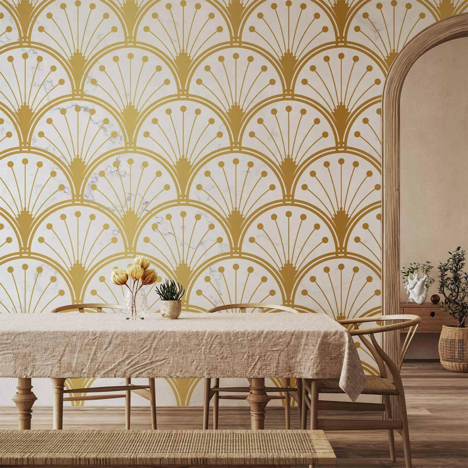 Fototapety stają się coraz bardziej popularne i z pewnością jeszcze długo będą wpisywać się w obowiązujące trendy wnętrzarskie. Wynika to m.in. z faktu, że dają spektakularne efekty, a ich montaż nie stanowi dużego problemu. Fototapeta "Fototapeta - Złoto i marmur wzór inspirowany art deco" pozwala na całkowitą zmianę dotychczasowej aranżacji i to bez potrzeby przeprowadzania gruntownego remontu. Wystarczy odpowiednio dobrać wzór, aby stworzyć klimatyczne i eleganckie wnętrze. Nasze fototapety na wymiar to odpowiedni wybór dla każdego, komu marzy się metamorfoza domu. Z ich pomocą można bez dużego wysiłku odświeżyć dowolne pomieszczenie, a więc sypialnię, salon, pokój dziecka czy jadalnię. Fototapety ścienne są niezwykle łatwe w montażu. W porównaniu do zwykłego malowania praca nie zajmuje tak dużo czasu, można z powodzeniem wykonać ją samodzielnie. W dodatku taka dekoracja pozwala na zamaskowanie niedoskonałości ścian (np. trudnych do usunięcia plam) i uzyskanie doskonałych efektów.