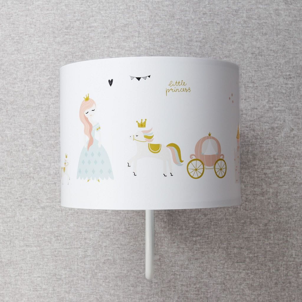 Uroczy kinkiet do pokoju dziewczynki z iście królewskim abażurem. Nadruk na abażurze przedstawiający królewskie atrybuty fantastycznie wpisze się w projekt pokoju każdej małej księżniczki. Delikatne światło kinkietu zapewni przyjemną atmosferę przed wieczornym zasypianiem, przy słuchaniu bajki o dzielnym królewiczu...Kinkiet do pokoju dziewczynki jest częścią kolekcji Sweet Dreams i wraz z pozostałymi lampami stworzy piękne i optymalne oświetlenie dziewczęcego pokoju.