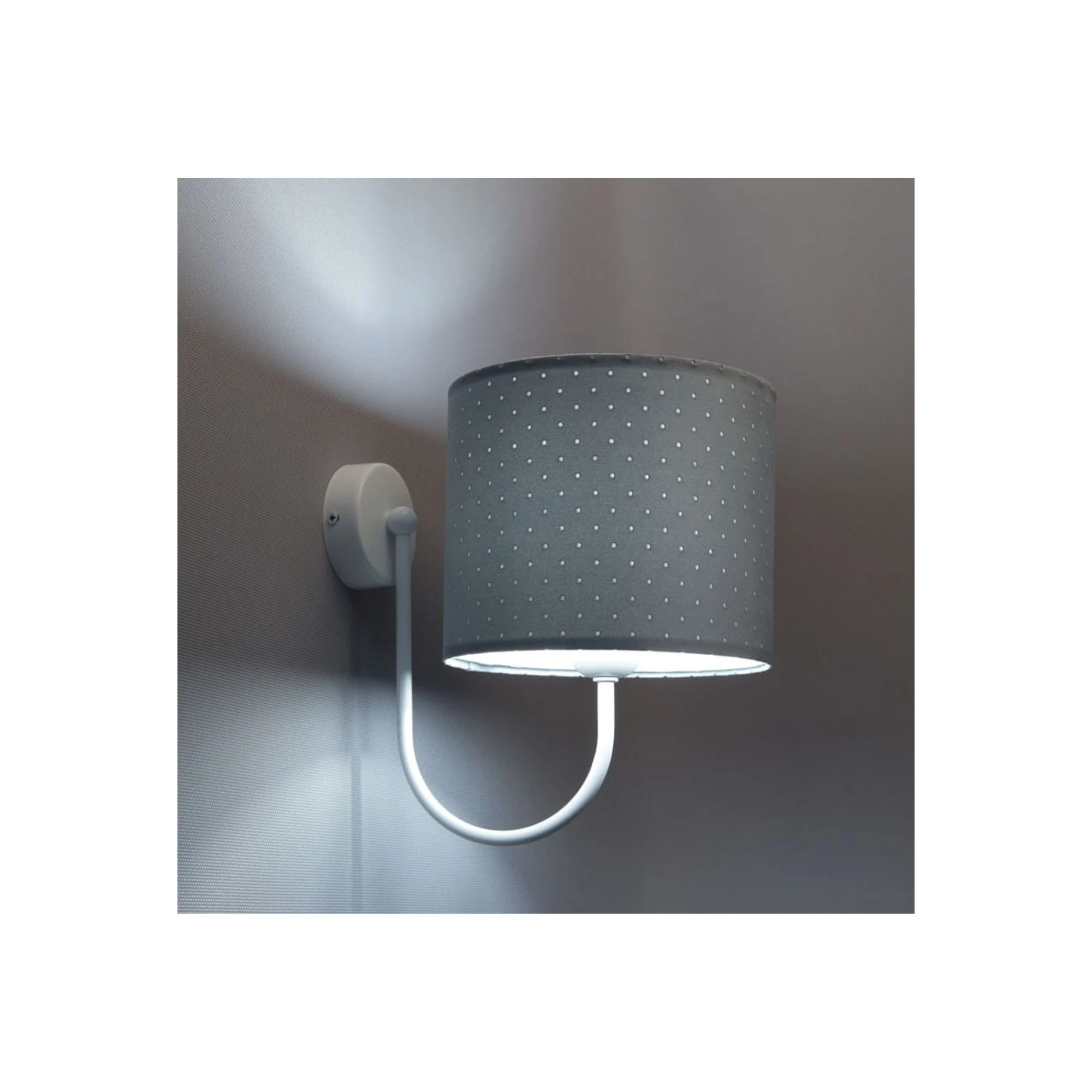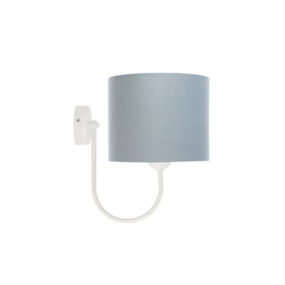 Stalowy błękit dobrze odnajduje się w dziecięcych wnętrzach, bo jest delikatny, ale nie zlewa się z tłem. Taki kolor pięknie łączy się z bielą, jasną szarością, kremem i naturalnym drewnem, dlatego kinkiet można łatwo dopasować do różnych stylów pokoju dziecka. Sprawdzi się zarówno w przestrzeni niemowlaka, jak i w pokoju kilkuletniego dziecka, gdzie ważne są jasne, lekkie wizualnie dodatki.