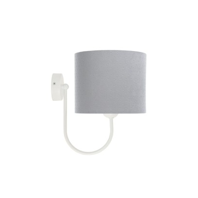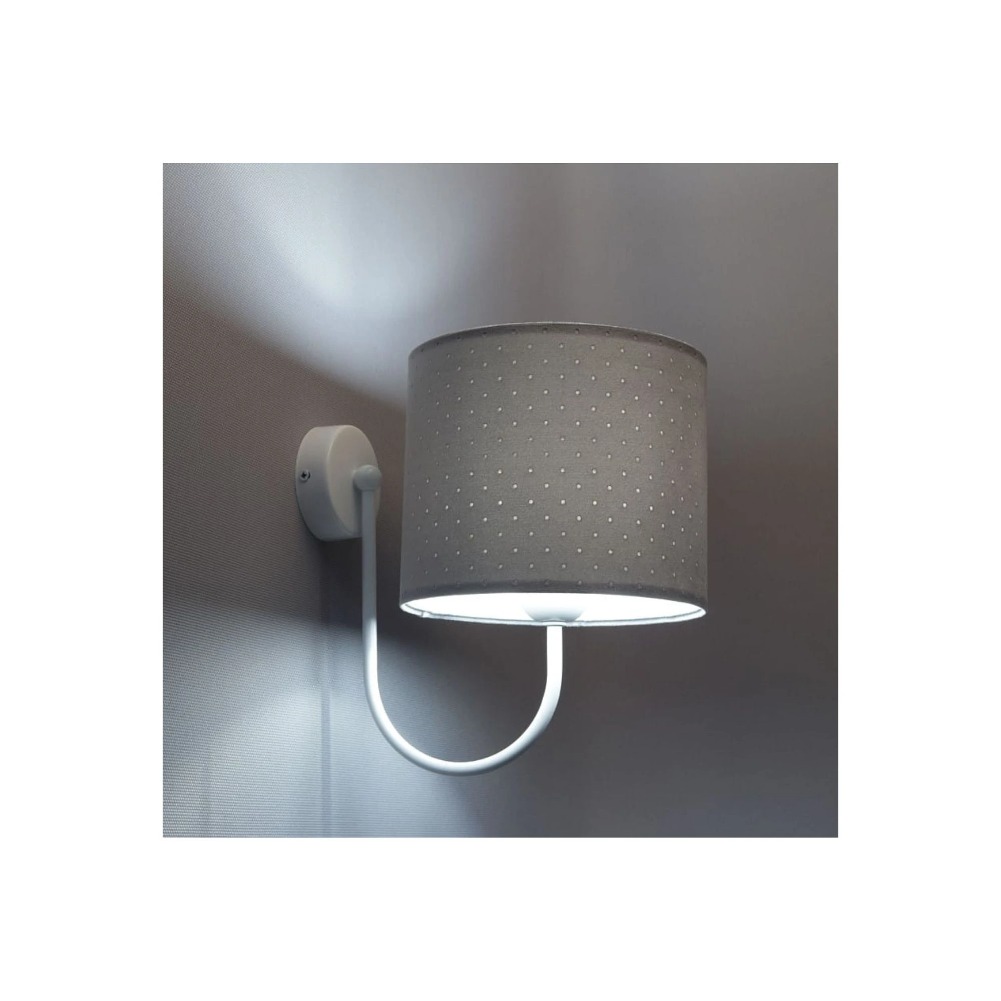 Szary kolor jest uniwersalny i ponadczasowy, dlatego łatwo zestawić go z innymi elementami wyposażenia pokoju dziecka. Taki kinkiet dobrze wygląda w połączeniu z bielą, drewnem, beżami, pastelami i jaśniejszymi dodatkami, dzięki czemu sprawdza się zarówno w pokoju niemowlaka, jak i w przestrzeni starszego dziecka. Nie narzuca aranżacji, ale porządkuje ją wizualnie i pozwala budować spokojne tło dla mebli oraz tekstyliów.