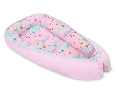- Redukcja bodźców – miękkie brzegi absorbują i tłumią dźwięki, które mogłyby wybudzać niemowlę, a zwarta forma kokonu pomaga dziecku uspokoić się i szybciej zasnąć.
