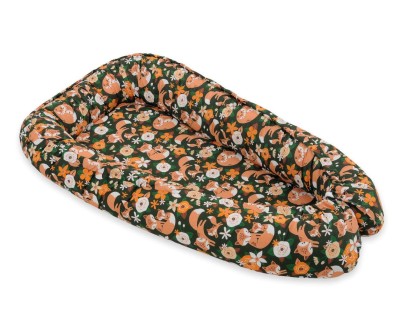 Kokon niemowlęcy z najwyższej tkaniny bawełnianej z certyfikatem OekoTex, idealnie sprawdza się jako miejsce do spania i wypoczynku dla noworodka i niemowlęcia. Dzięki kompaktowym wymiarom i przytulnemu kształtowi, kokon jest bardziej komfortowy i bezpieczniejszy dla dziecka niż klasyczne łóżeczko, umożliwiając mu poczuć się jak w łonie matki. Wewnętrzna przestrzeń jest celowo ograniczona, by pomóc dziecku stopniowo przejść z pozycji embrionalnej do bardziej wyprostowanej postawy w miarę rozwoju.