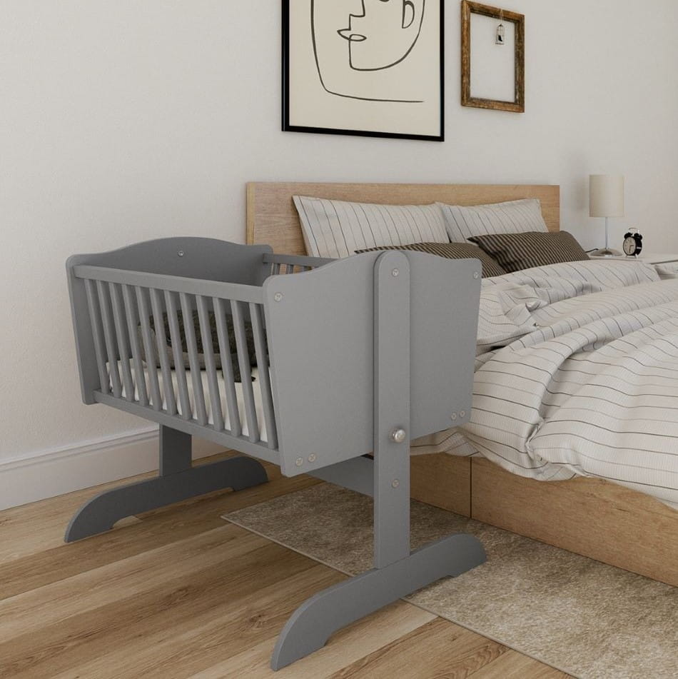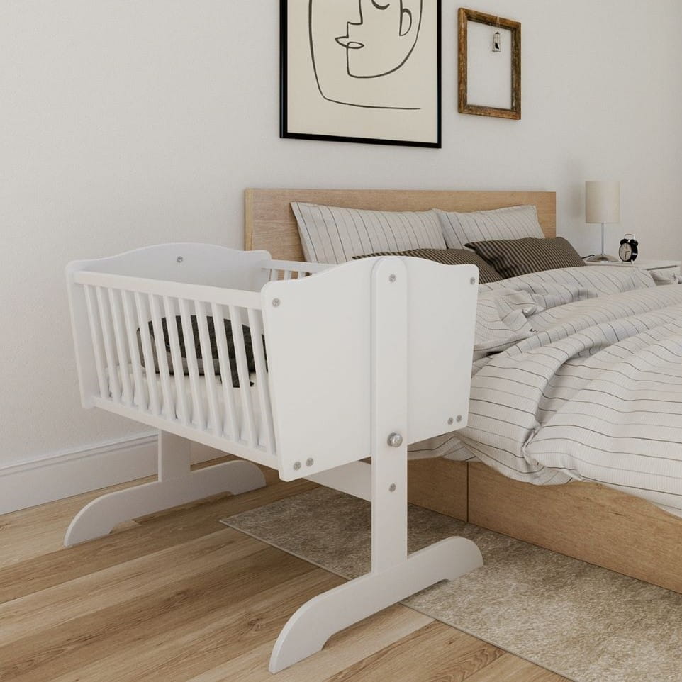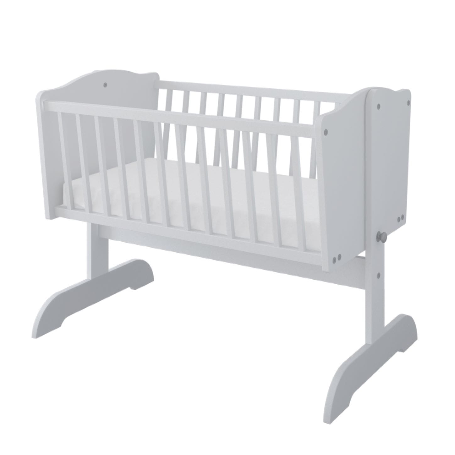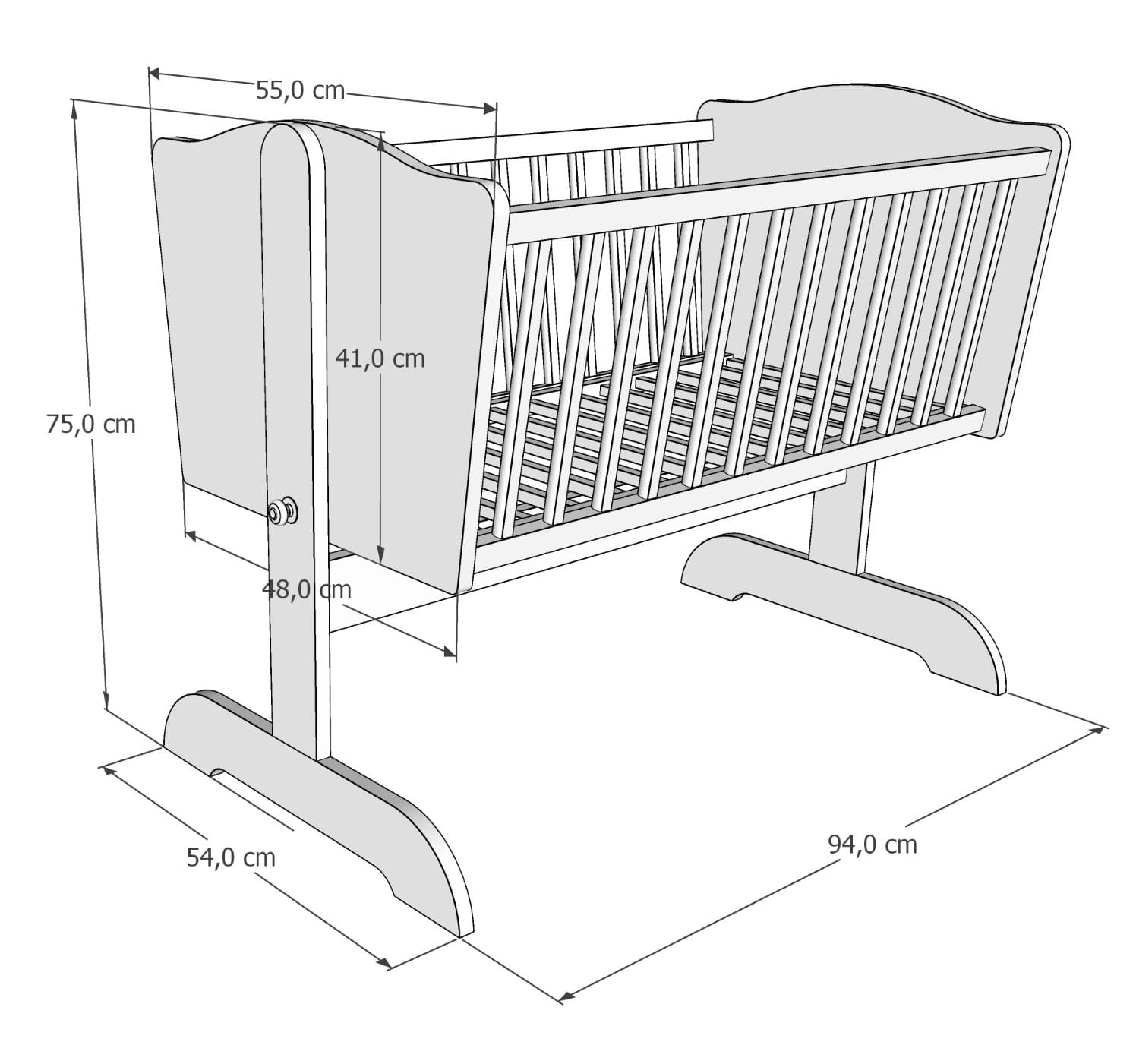 Kołyska drewniana wykonana jest z drewna sosnowego i płyty meblowej. Dostępna jest w jednym z trzech kolorów, co pozwala wybrać ten, który najbardziej pasować będzie do wystroju pokoju dziecka czy mieszkania. Kołyska jest bardzo łatwa w montażu, bez konieczności użycia narzędzi.