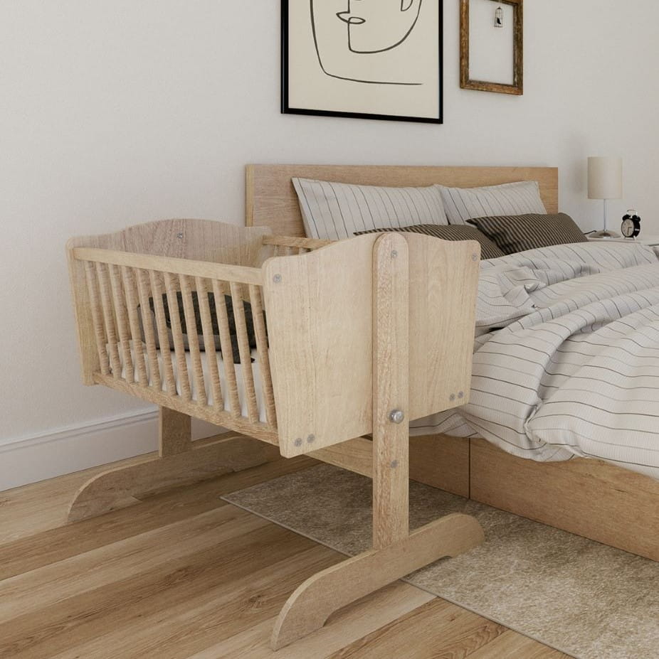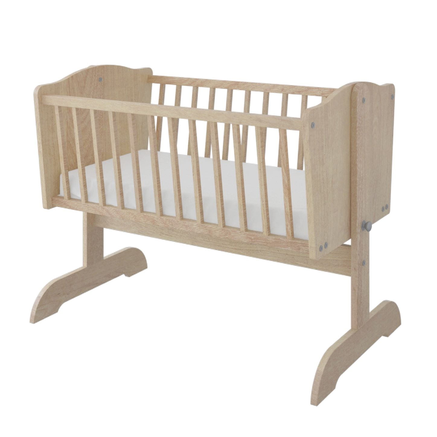 Klasyczna drewniana kołyska dla dziecka, która w pierwszych miesiącach życia maluszka może pełnić także funkcję łóżeczka. Kołyska wyposażona jest w mechanizm blokujący kołysanie, który można włączyć gdy dziecko już zaśnie. Kolejną zaletą kołyski jest jej mobilność. Kołyska drewniana na wyposażeniu standardowym posiada kółeczka, dzięki którym ustawienie jej w wybranym przez nas miejscu jest bardzo łatwe. Pozwala to mieć maluszka w zasięgu wzroku podczas pracy zdalnej, wykonywania prac domowych czy zasłużonego odpoczynku:) Równocześnie, szczebelki na dłuższych bokach kołyski pozwalają dziecku na obserwowanie nas i otoczenia w czasie czuwania.