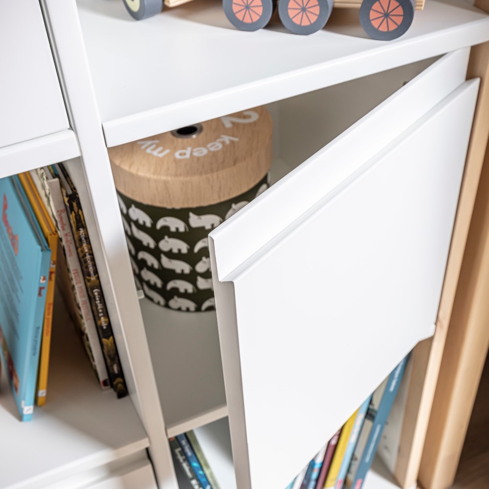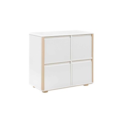 Komoda Funflex 4 drzwi MDF to zamykana komoda do pokoju młodzieżowego o wymiarach 76,5 × 72 × 40 cm. Cztery równe fronty z gładkiego, lakierowanego MDF tworzą minimalistyczną bryłę, która pasuje zarówno do jasnego, jak i bardziej stonowanego pokoju nastolatka. Komoda świetnie uzupełnia inne meble z kolekcji Funflex – szafy, komody, łóżka i biurko – pozwalając stworzyć spójny, nowoczesny zestaw mebli młodzieżowych.