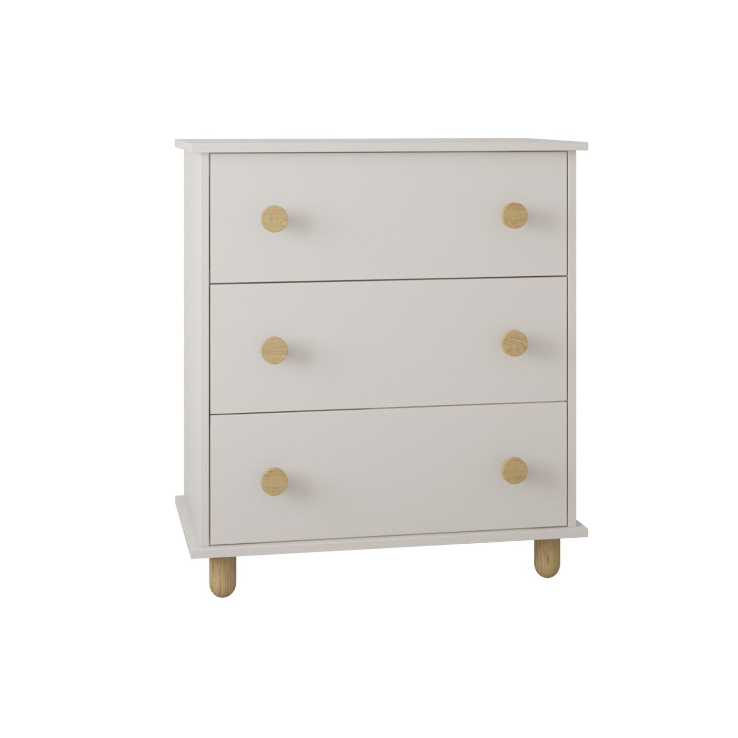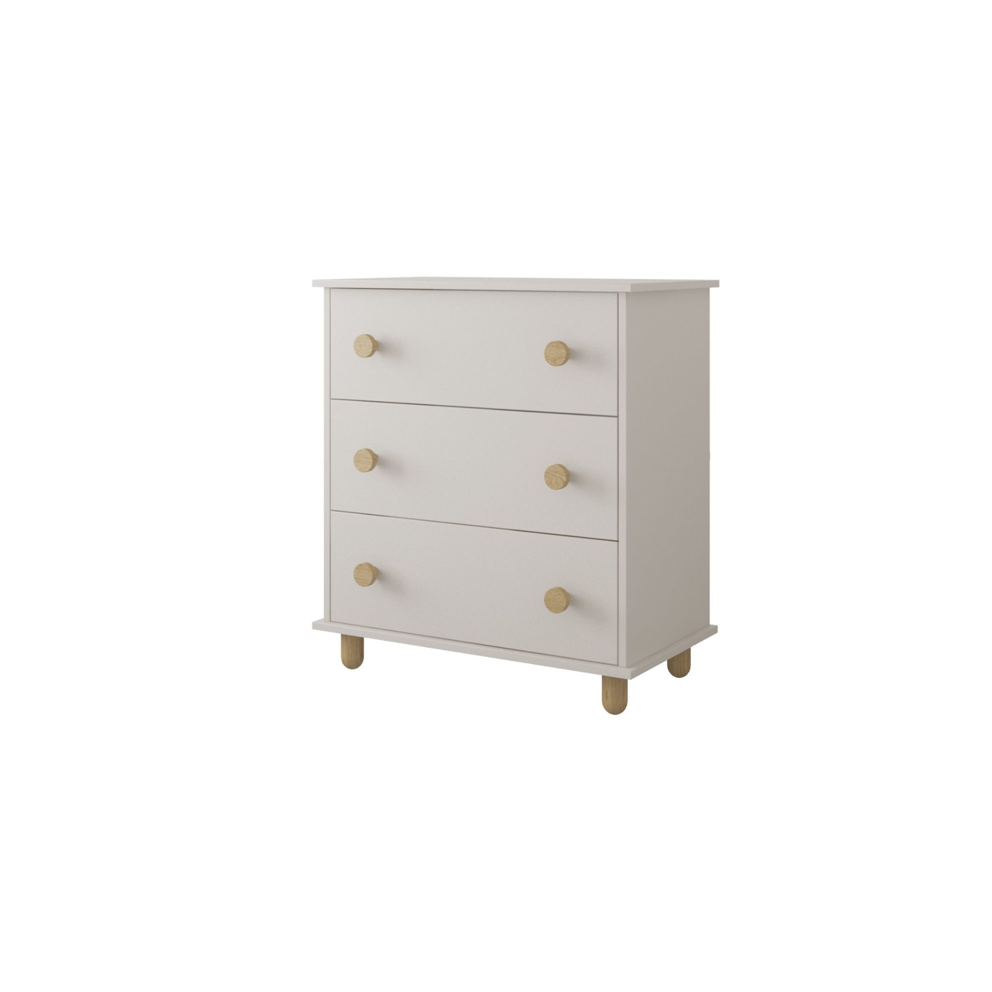 Komoda dla dziecka Lilo kaszmir to pojemny i przytulny element strefy przechowywania w pokoju dziecka. Trzy szerokie, łatwo wysuwane szuflady pomagają uporządkować ubranka, pościel, zabawki i wszystkie drobiazgi, które towarzyszą maluchowi na co dzień. Ciepły, neutralny odcień kaszmiru tworzy spokojne tło dla aranżacji pokoju niemowlęcia i pasuje również do wnętrza starszego dziecka. Komoda świetnie współgra z innymi meblami dziecięcymi z kolekcji Lilo, takimi jak łóżeczko, regał czy komoda z przewijakiem.