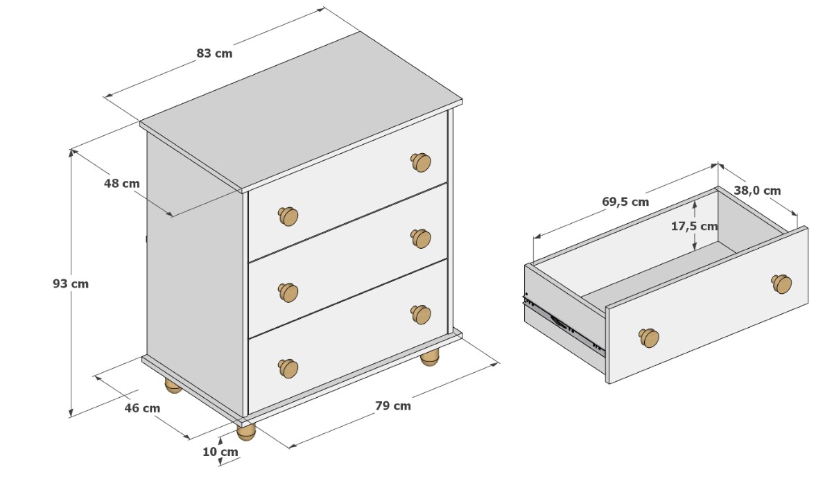 plecy i dna szuflad z płyty HDF zapewniają stabilność konstrukcji,