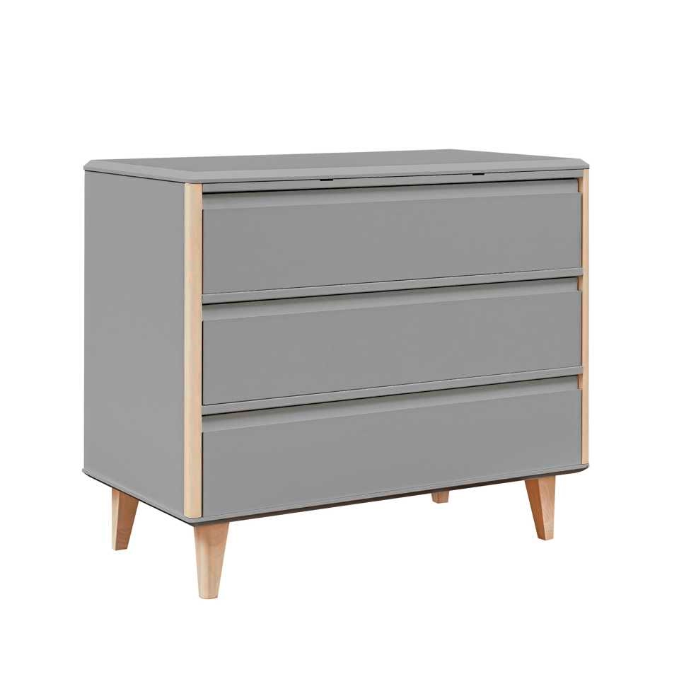 Komoda pod przewijak Loopi MDF łączy estetykę skandynawskiego designu z wygodą codziennej pielęgnacji dziecka. Trzy pojemne szuflady pomieszczą ubranka, pieluszki i tekstylia, a kompaktowe wymiary 100 × 55 × 87,5 cm sprawiają, że komoda dobrze sprawdzi się nawet w mniejszym pokoju niemowlęcia. Subtelnie zaokrąglone krawędzie i smukłe, brzozowe nogi nadają meblowi lekkości – to idealna baza pod przewijak Loopi, dzięki której zorganizujesz wygodny kącik do przewijania. Jeśli kompletujesz wyprawkę, możesz łatwo dobrać do komody inne meble dziecięce z kolekcji Loopi.