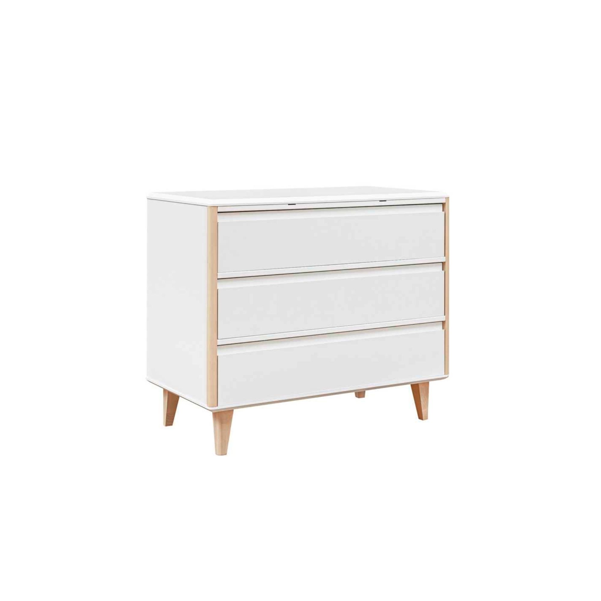 Komoda pod przewijak Loopi MDF pomoże Ci stworzyć dobrze zorganizowaną strefę przewijania i przechowywania w pokoju niemowlęcia. Dzięki trzem szufladom wszystko, czego potrzebujesz przy pielęgnacji maluszka, jest zawsze pod ręką, a po okresie niemowlęcym mebel płynnie przechodzi do roli klasycznej komody w pokoju dziecka.