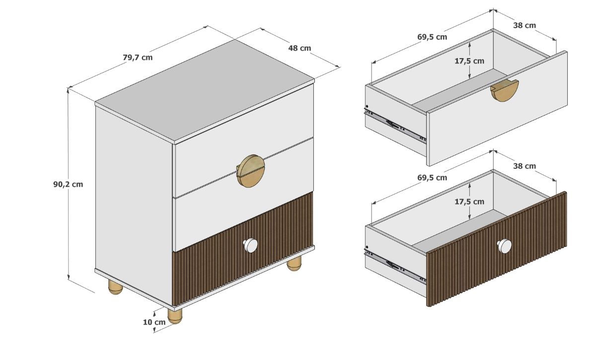 wymiar użytkowy szuflady: 69,5 × 38 × 17,5 cm,