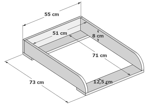 blat z podwyższonymi bokami mieści przewijak o wymiarze użytkowym 71 × 51 cm,