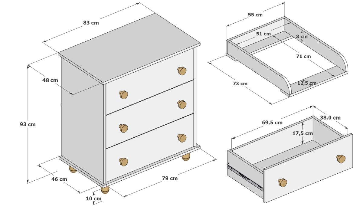 Trzy głębokie, łatwo wysuwane szuflady pomieszczą ubranka, pieluszki, kocyki i wszystkie akcesoria potrzebne przy przewijaniu.