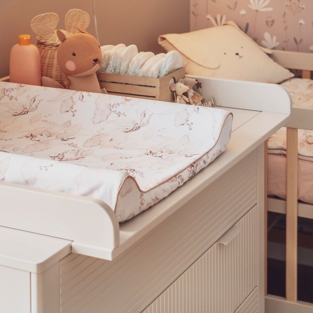 Nakładka do przewijania jest dopasowana do blatu komody, co zapewnia stabilną i bezpieczną powierzchnię roboczą.