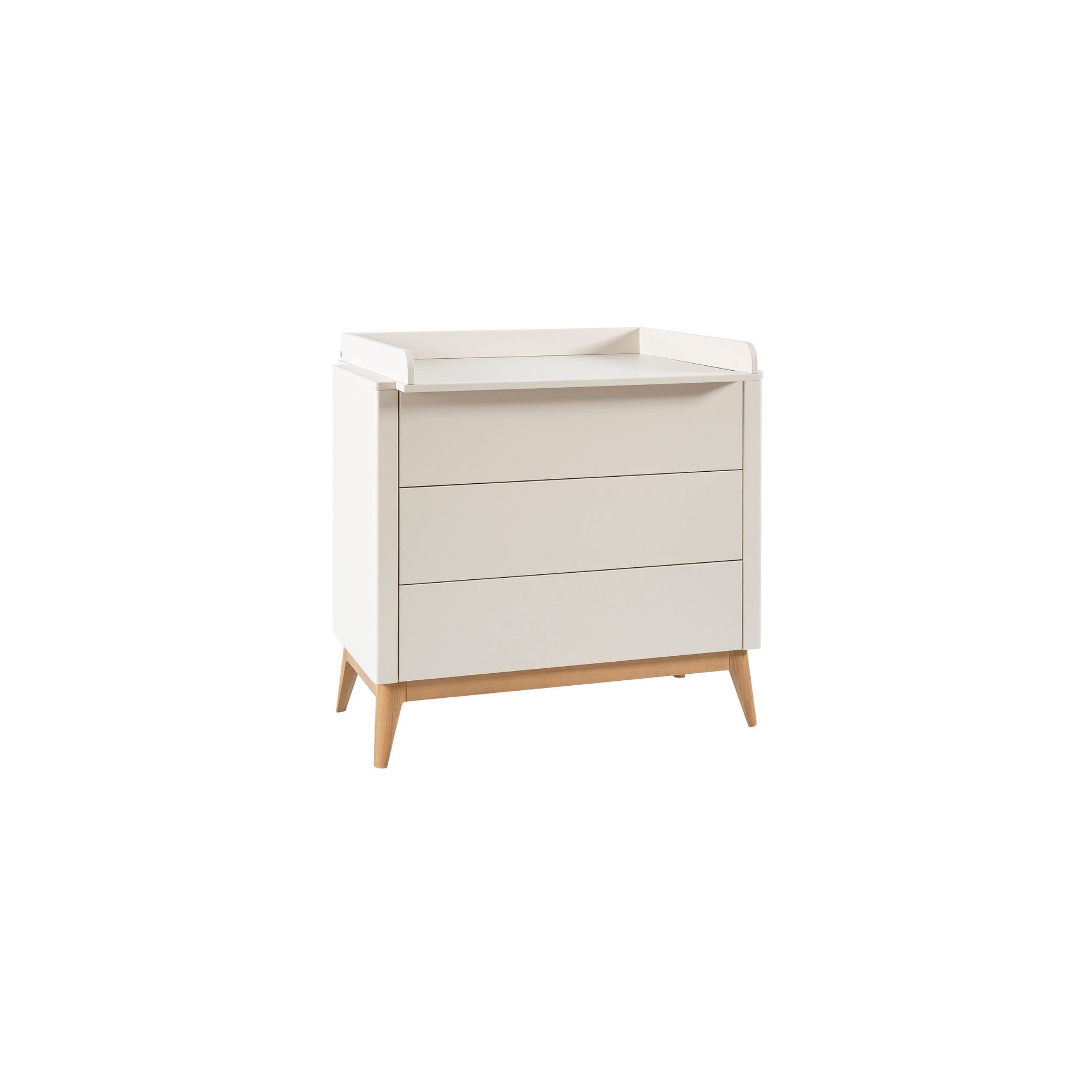 Komoda z przewijakiem Seth to wygodne centrum pielęgnacji niemowlęcia, które łączy funkcję przewijaka z pojemną komodą na ubranka i tekstylia. Delikatny, szampański kolor frontów i bukowe nóżki w stylu skandynawskim sprawiają, że mebel świetnie wpisuje się w jasne, spokojne aranżacje pokoju dziecka. Komoda jest częścią kolekcji mebli dziecięcych Seth, dzięki czemu łatwo zestawisz ją z łóżeczkiem i szafą w tym samym stylu.