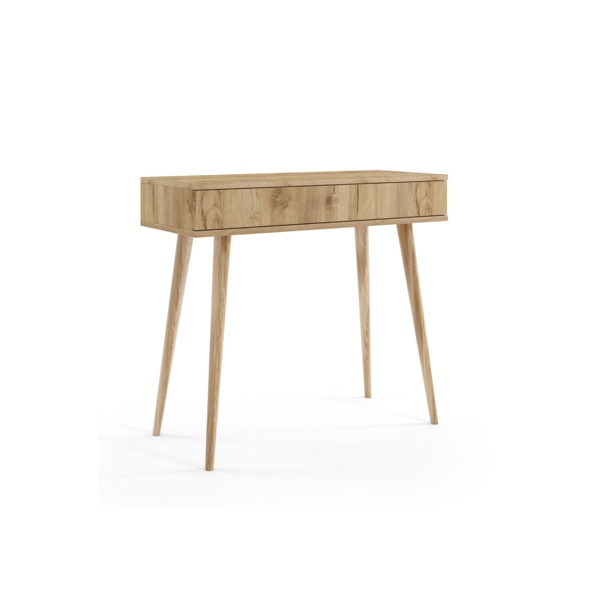 Konsola toaletka - Millea w kolorze dąb craft to stylowy i wszechstronny mebel, który świetnie sprawdzi się w pokoju nastolatki. Wykonana z materiałów o ciepłym, naturalnym wykończeniu, konsola wnosi do wnętrza przytulną atmosferę, harmonijnie łącząc estetykę z funkcjonalnością. Dzięki przemyślanemu designowi, konsola może pełnić rolę zarówno eleganckiej toaletki, jak i niewielkiego biurka, co czyni ją idealnym rozwiązaniem do mniejszych przestrzeni.