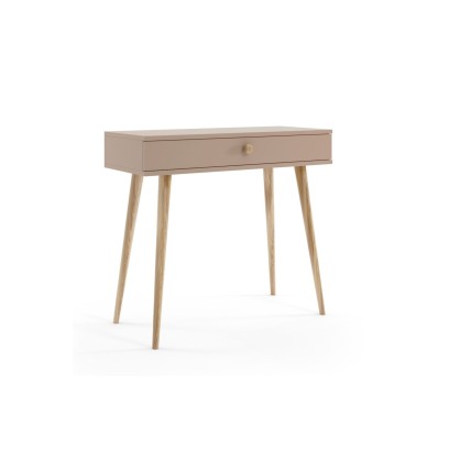 Konsola toaletka - Millea macchiato to elegancki i praktyczny mebel, który idealnie nadaje się do pokoju nastolatki. Jej ciepły, kawowy odcień macchiato wprowadza do wnętrza przytulną atmosferę, sprzyjającą relaksowi i kreatywności. Dzięki swojej wszechstronności, konsola może pełnić funkcję zarówno stylowej toaletki, jak i niewielkiego biurka, co czyni ją doskonałym wyborem do mniejszych przestrzeni.