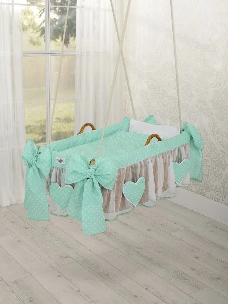 - obszycie 100% bawełna: obszycie na kosz z wszytą warstwą włókniny, poduszka i kołderka, poszewka na poduszkę i kołderkę