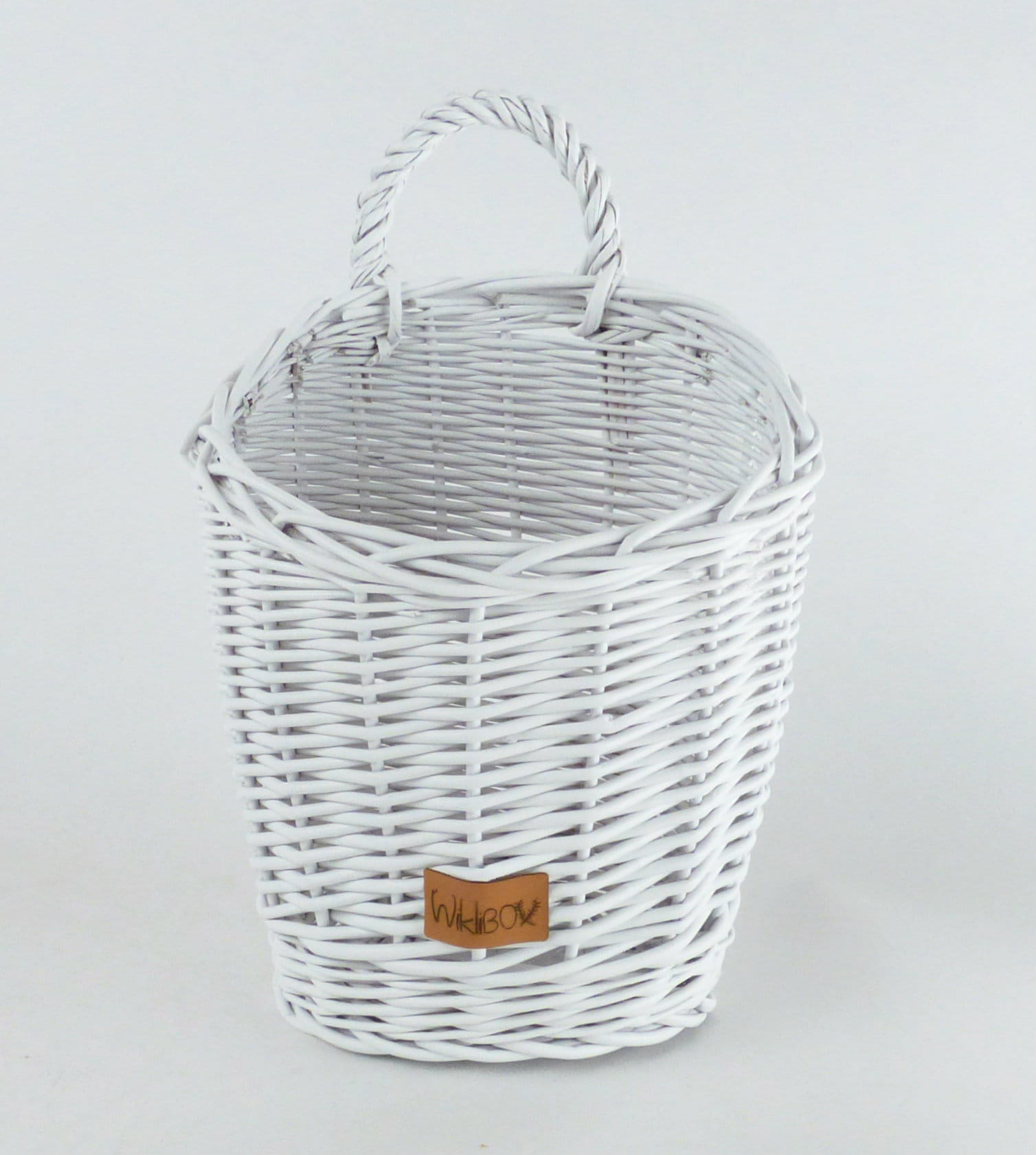 Niewielki, śliczny i praktyczny koszyczek na ścianę. Koszyk do zawieszenia ręcznie wyplatany z najwyższej jakości polskiej wikliny, pomalowany białą ekologiczną farbą będzie ciekawym i oryginalnym dodatkiem do pokoju dziecka. Koszyczek wiklinowy w pokoju niemowlęcym zawieszony nad przewijakiem może służyć jako pojemniczek na przybory toaletowe dla maluszka, w pokoju starszego dziecka jako miejsce przechowywania skarbów. Świetnie się sprawdzi również w pokoju młodzieżowym służąc jako koszyk na drobiazgi: klucze, ładowarkę do telefonu, etc.