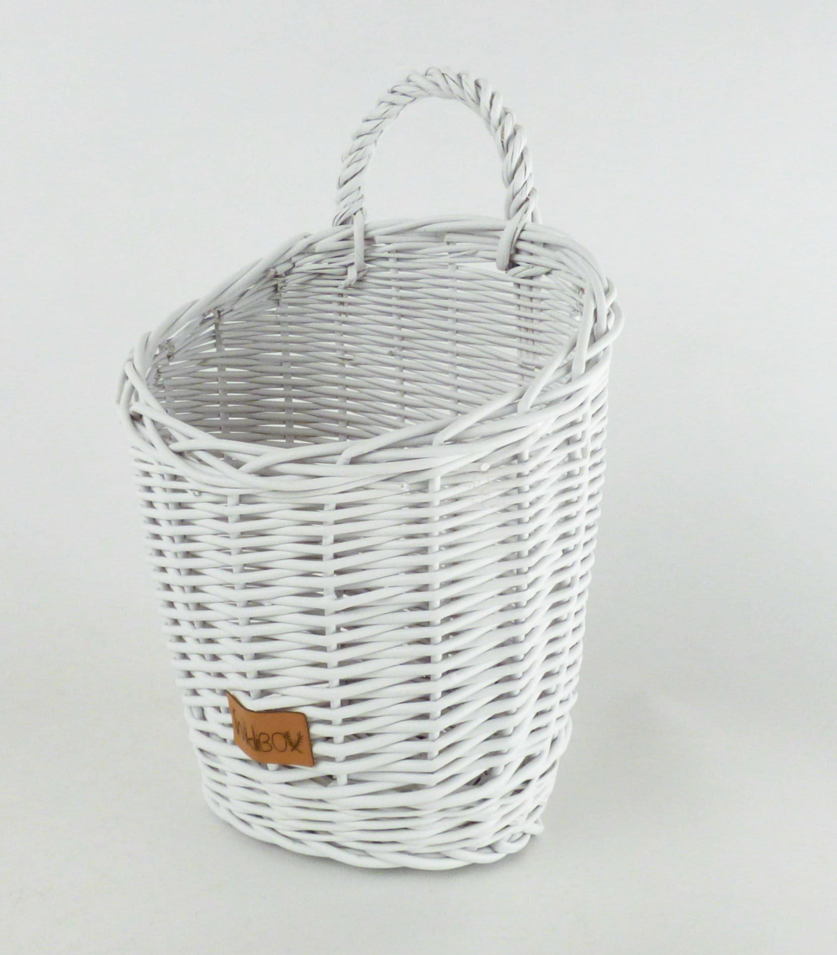 Koszyczek na ścianę posiada rączkę, która ułatwia jego zawieszenie, i proste "plecki" tak by nie odstawał od ściany.