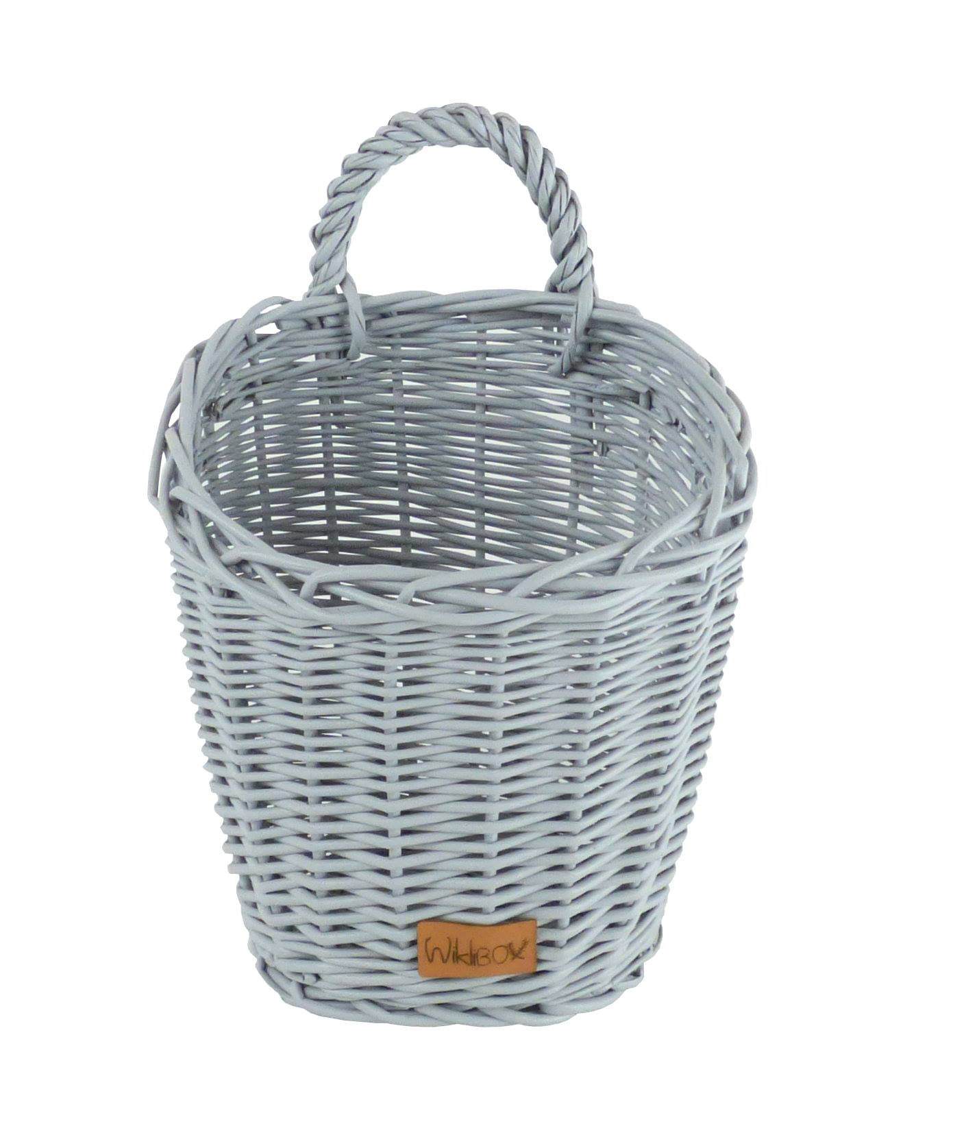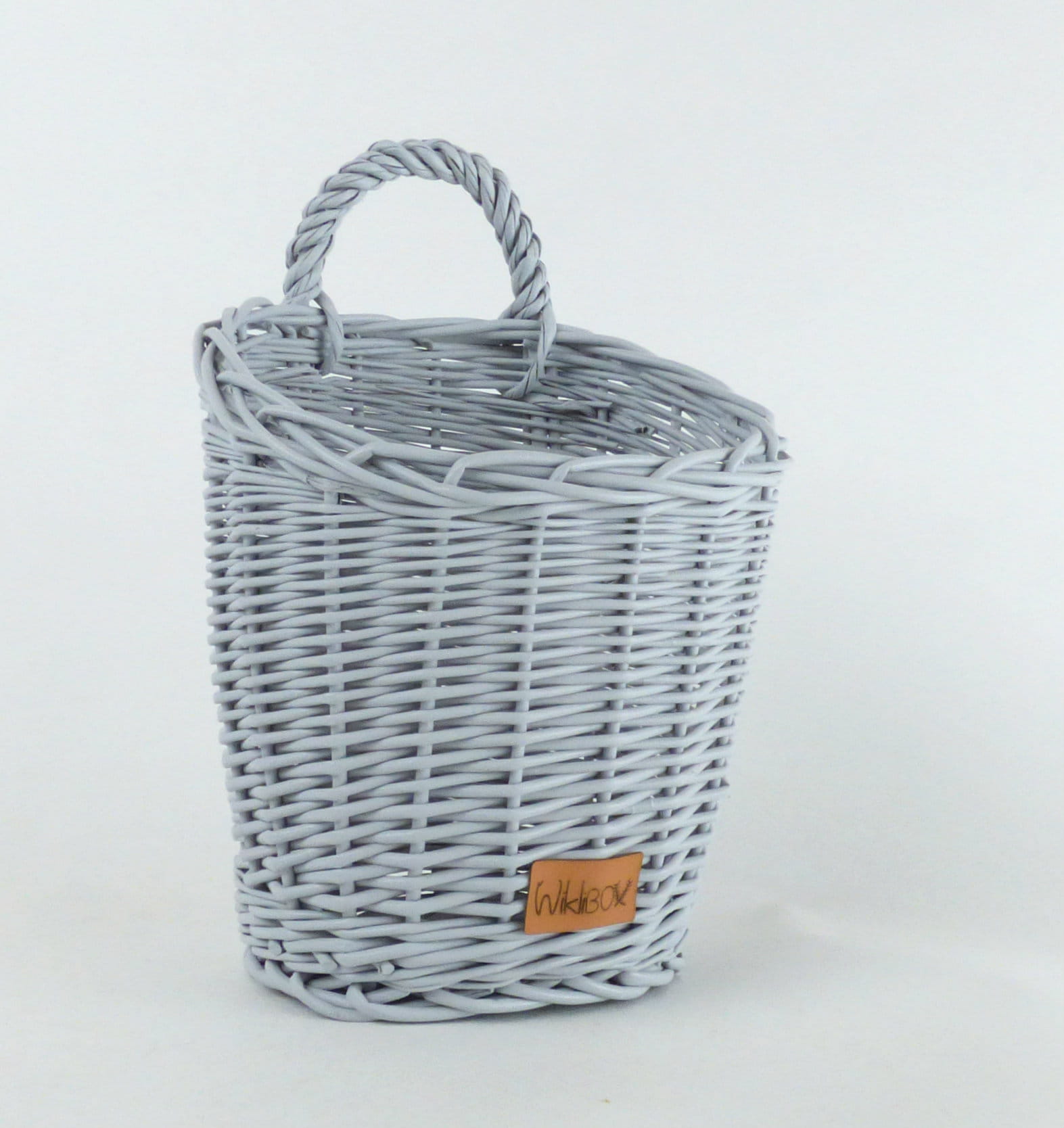 Niewielki, śliczny i praktyczny koszyczek na ścianę. Koszyk do zawieszenia ręcznie wyplatany z najwyższej jakości polskiej wikliny, pomalowany szarą ekologiczną farbą będzie ciekawym i oryginalnym dodatkiem do pokoju dziecka. Koszyczek wiklinowy w pokoju niemowlęcym zawieszony nad przewijakiem może służyć jako pojemniczek na przybory toaletowe dla maluszka, w pokoju starszego dziecka jako miejsce przechowywania skarbów. Świetnie się sprawdzi również w pokoju młodzieżowym służąc jako koszyk na drobiazgi: klucze, ładowarkę do telefonu, etc.