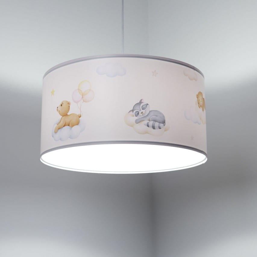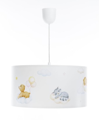 Lampa do pokoju niemowlaka, która zachwyca swoją delikatnością. Klasyczny kształt abażura utrzymany w pastelowej tonacji, z typowo dziecięcym nadrukiem pasować będzie do pokoju dziewczynki i chłopczyka. Lampa wisząca, której światło rozleje się po pokoju wprowadzając do niego ciepłą i przytulną atmosferę. lampa do pokoju niemowlaka jest częścią kolekcji Sweet Dreams i wraz z pozostałymi lampami stworzy optymalne i prawidłowe oświetlenie dziecięcego pokoju.
