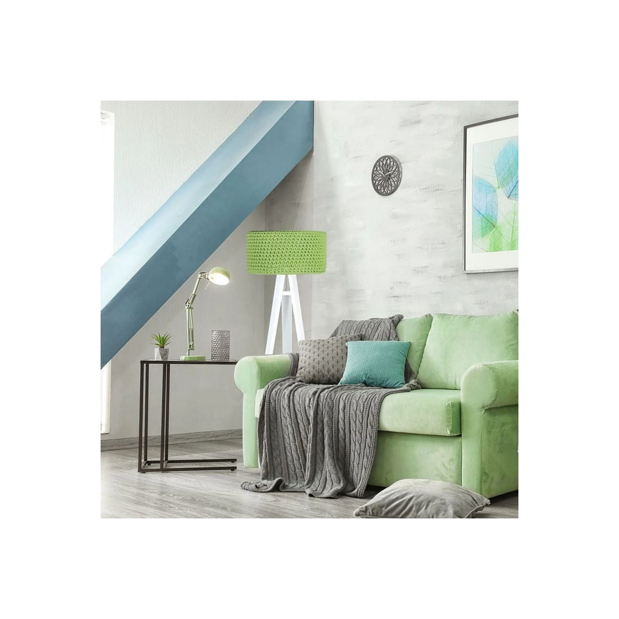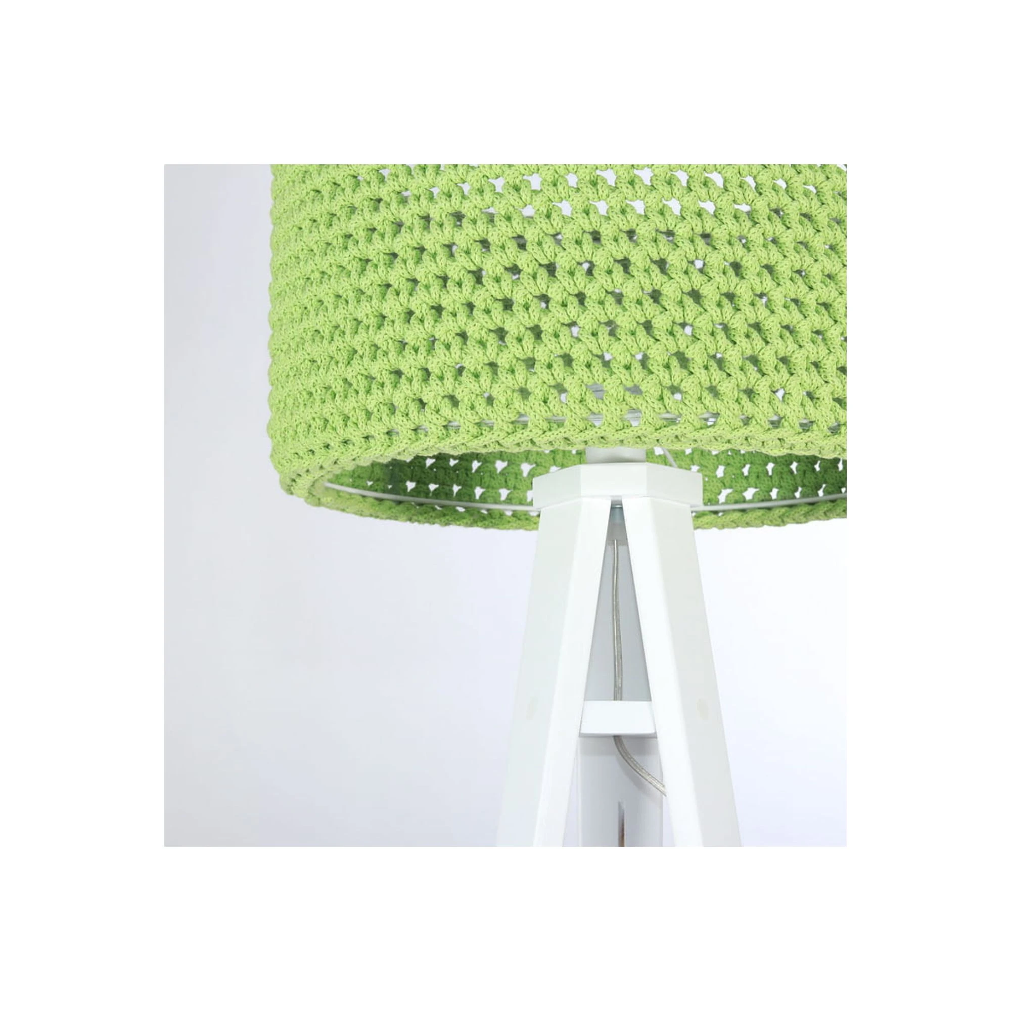 Model Splot zielony świetnie odnajduje się w jasnych, spokojnych aranżacjach. Biały drewniany trójnóg nadaje lampie lekkości, a abażur o wyrazistej fakturze sprawia, że oświetlenie staje się także dekoracją wnętrza. To dobry wybór do pokoju dziecka, kącika zabaw lub przytulnej strefy wieczornego wyciszenia.