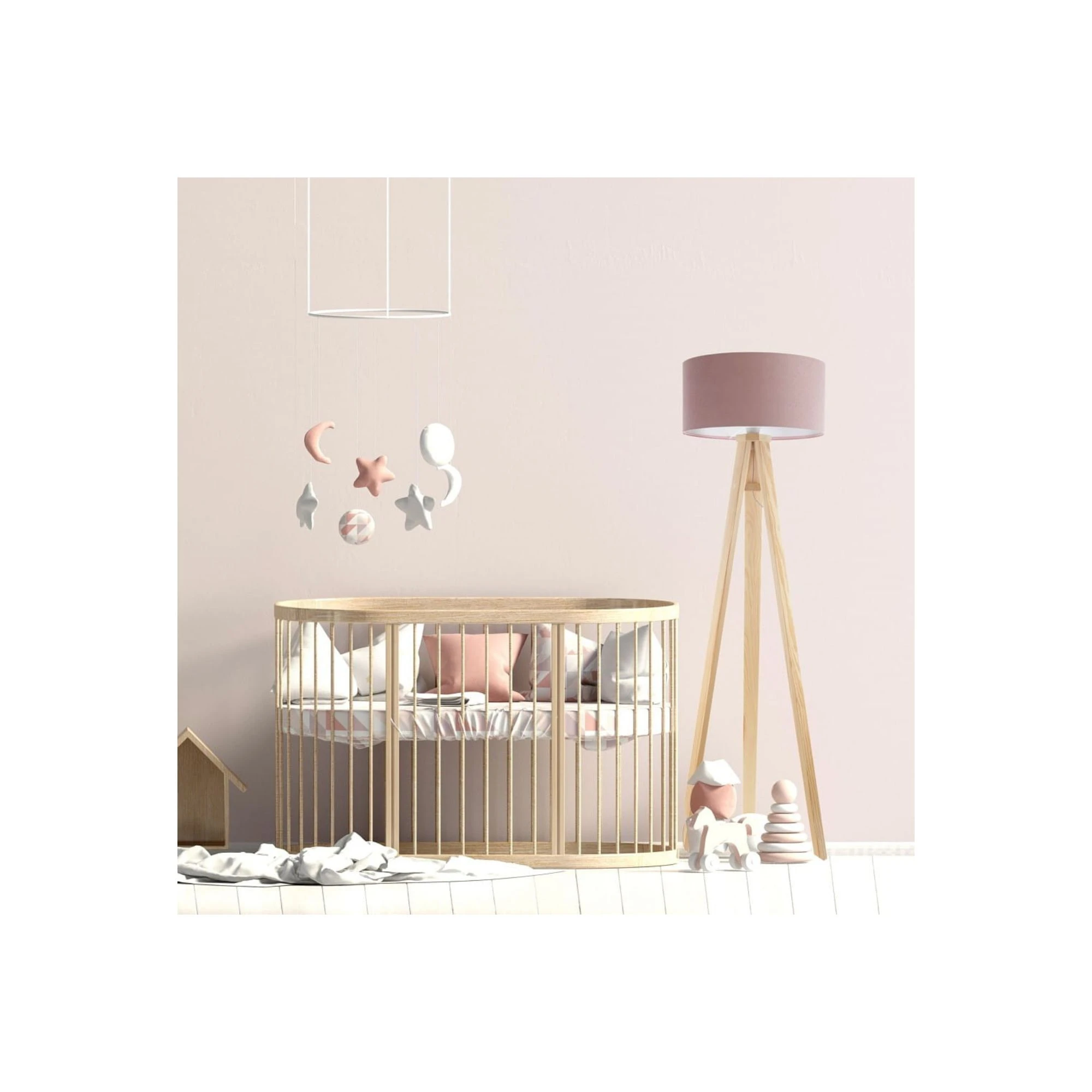Lampa podłogowa różowa Jasmine Bebe to delikatne oświetlenie do pokoju dziecka, które łączy pudrowy róż, miękką fakturę abażura i naturalne drewno. Dzięki lekkiej formie na trójnogu lampa nie przytłacza wnętrza, a jednocześnie staje się jego wyraźnym, dekoracyjnym elementem. Na dedekids.pl zamówisz ją z darmową dostawą.