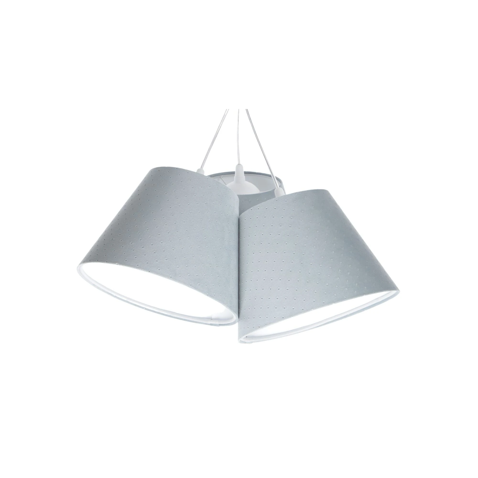 Lampa potrójna stalowa Jasmine Bebe to lekka wizualnie lampa sufitowa do pokoju dziecka, która łączy delikatny odcień stalowego błękitu, miękką linię abażurów i dekoracyjne wykończenie tkaniny. Trzy stożkowe klosze tworzą spójną, estetyczną całość, dzięki której wnętrze zyskuje spokojny i dopracowany charakter. Na dedekids.pl zamówisz ją z darmową dostawą.
