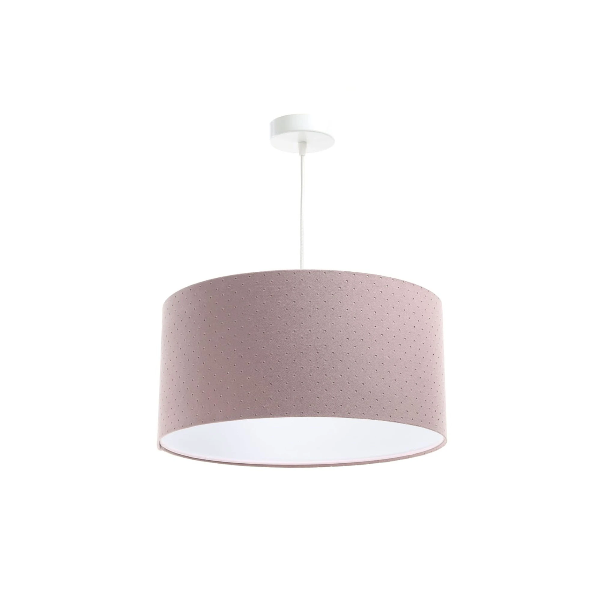 - abażur: pikowana tkanina jaśminowa w różowym kolorze na białym tworzywie PCV