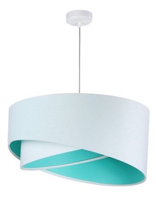Oszczędna forma, asymetria i ręczne wykonanie lampy podkreśli wystrój pokoju dziecięcego. Biały welur abażura w połączeniu z turkusowym środkiem sprawia, że lampa wpasuje się w każde wnętrze. Materiał odporny na działanie promieni UV pozwoli na zachowanie koloru przez długi czas użytkowania lampy.