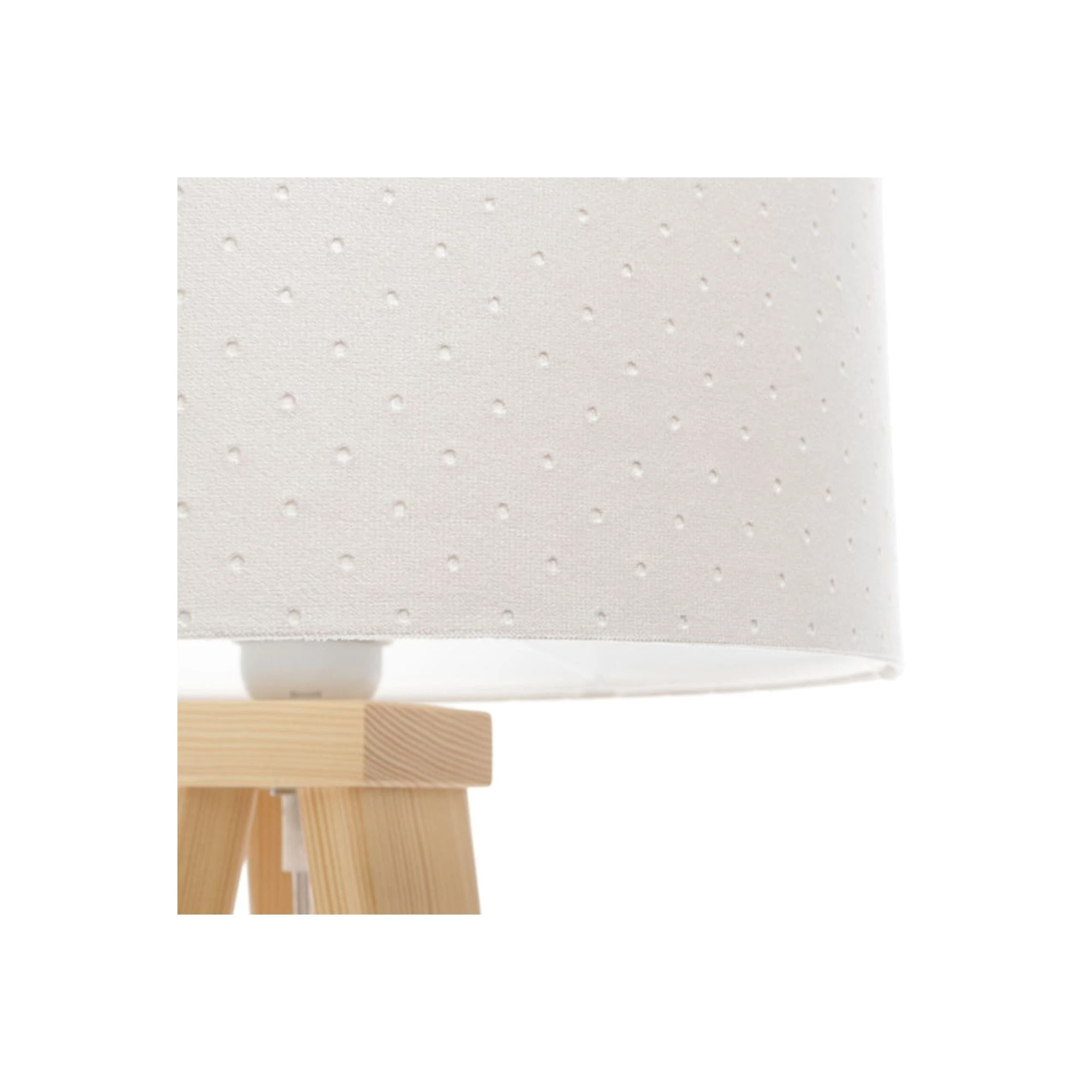 To model, który łatwo ustawić na szafce nocnej, komodzie albo regale, wszędzie tam, gdzie potrzebne jest dodatkowe światło wieczorem. Podstawa z drewna sosnowego dostępna w kolorze naturalnym lub białym pozwala dopasować lampkę do wystroju pokoju. Jej kompaktowa forma sprawia, że dobrze prezentuje się na meblach dziecięcych, a ręczne wykonanie podkreśla staranność detali i charakter kolekcji Jasmine Bebe.